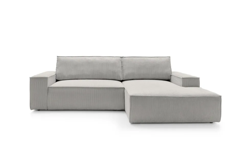 Prezentowany narożnik Molde to doskonałe rozwiązanie dla osób ceniących styl i komfort. Wykonany z wysokiej jakości materiałów, pokryty jest miękką i przyjemną w dotyku tkaniną sztruksową, która dodaje mu niepowtarzalnego charakteru. Oferuje duże powierzchnie do spania o wymiarach 210x135cm, co sprawia, że jest idealny do codziennego wypoczynku, czy popołudniowej drzemki. Dodatkowo, narożnik posiada praktyczny pojemnik na pościel, dzięki czemu z łatwością utrzymasz porządek w swoim salonie.