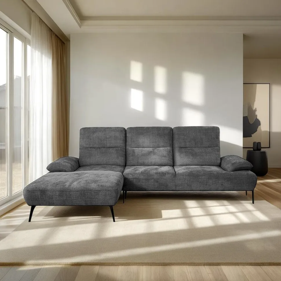 Intesi prezentuje stylowy narożnik Rasmus, który dzięki swojej minimalistycznej formie wpasuje się w każde wnętrze. Jest to mebel, który nie tylko zachwyca swoim wyglądem, ale również funkcjonalnością. Wyposażony jest w regulowane oparcie, które możemy dostosować do własnych potrzeb. Dzięki temu, każdy kto zasiądzie na narożniku, poczuje się komfortowo. Dodatkowo, gładkie siedzisko dodaje całości elegancji i lekkości.
