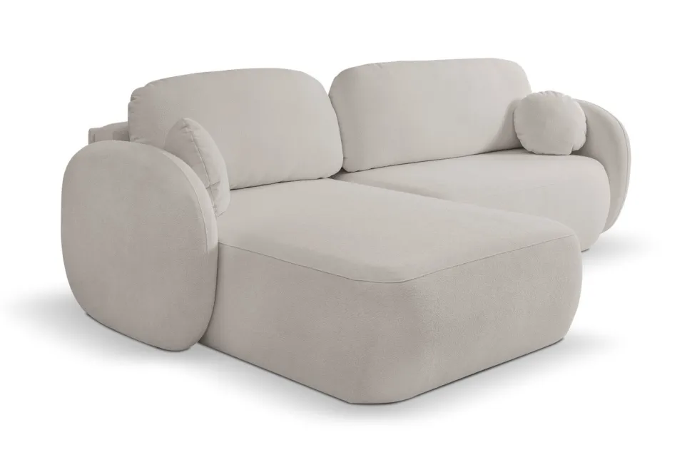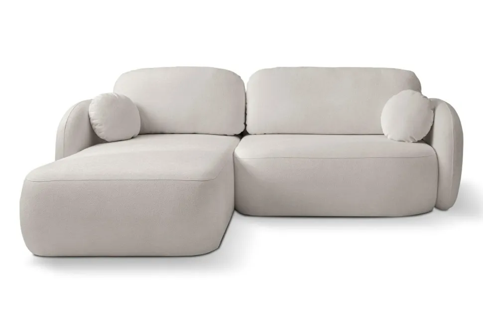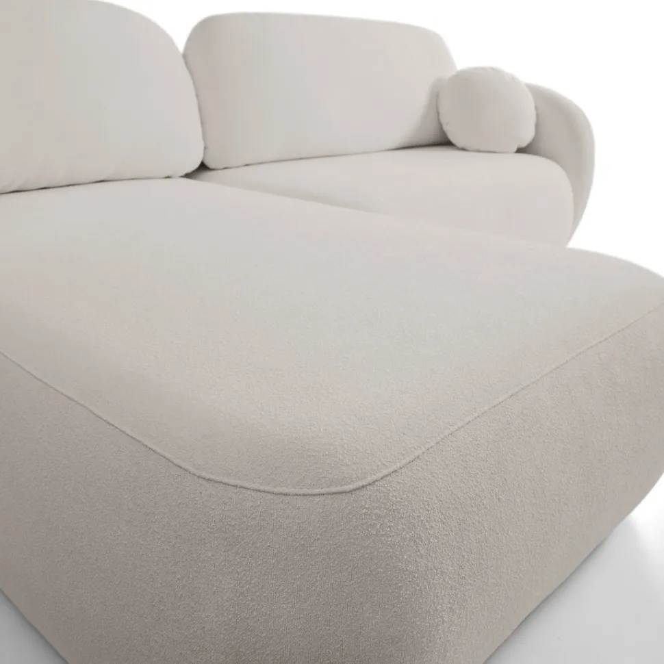 Przedstawiamy narożnik Salby, który stanowi połączenie elegancji i funkcjonalności. Jego wyjątkowy design inspirowany jest stylem japandi i boho, co sprawia, że idealnie wpisuje się w przestrzeń nowoczesnych mieszkań. Wygodne siedzisko i miękkie poduchy oparciowe gwarantują komfort na co dzień, a zaokrąglone podłokietniki dodają mu wyjątkowego charakteru. Dodatkowo sofa wyposażona jest w dwie okrągłe poduszki, które sprawią, że popołudniowa drzemka będzie jeszcze przyjemniejsza.