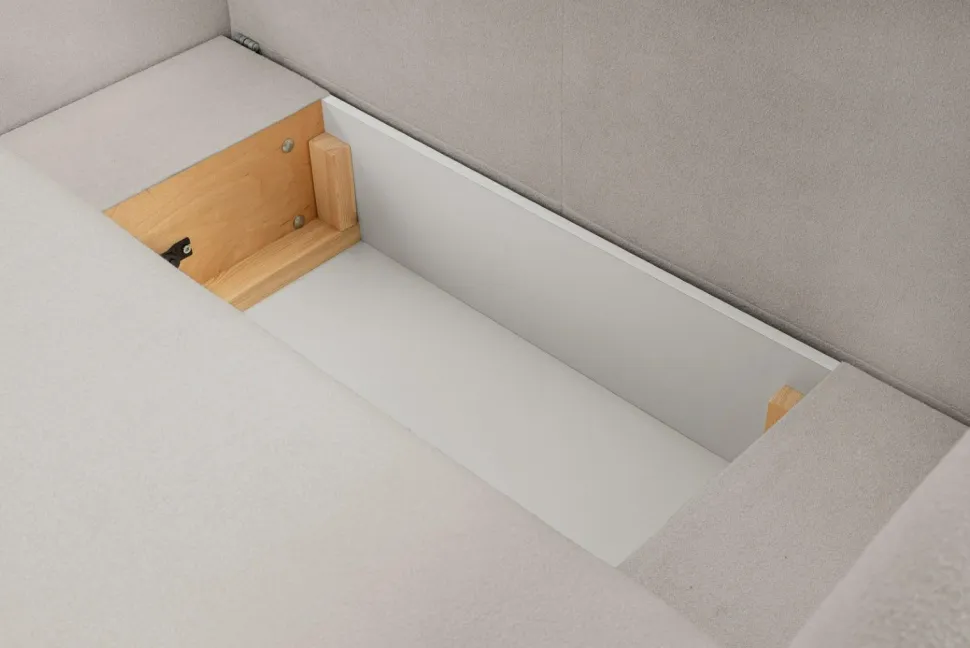 - Posiada funkcję spania oraz pojemnik na pościel, co czyni go niezwykle praktycznym.