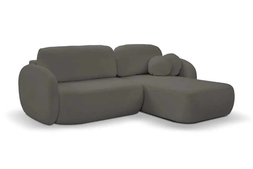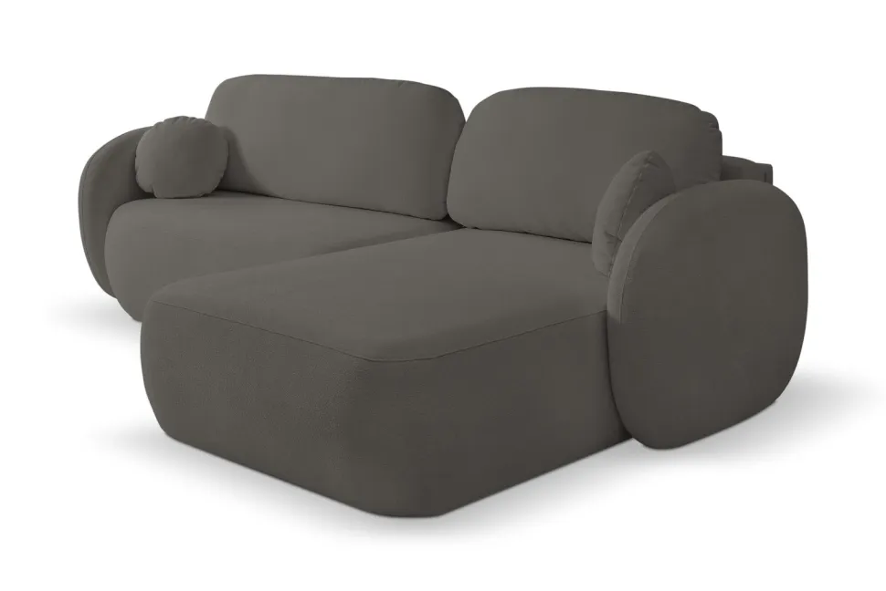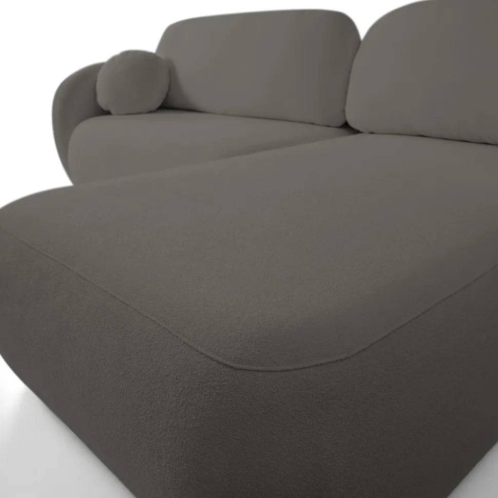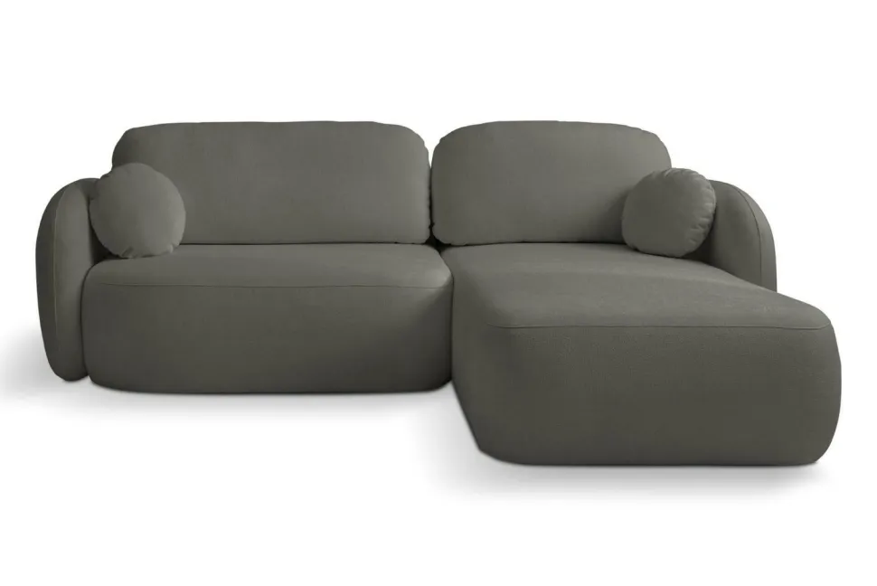 Intesi przedstawia Narożnik Salby z funkcją spania prawy antracytowa Sicuro 80, który łączy w sobie elegancję, komfort i funkcjonalność. Jego zaoblone poduchy i podłokietniki dodają mu wyjątkowego charakteru, idealnie wpisującego się w styl mebli japandi lub boho. Narożnik ten nie tylko urozmaici wystrój Twojego salonu, ale również zapewni Ci wygodę podczas codziennego użytkowania, jak i podczas poobiednich drzemek, dzięki dołączonym okrągłym poduszkom.