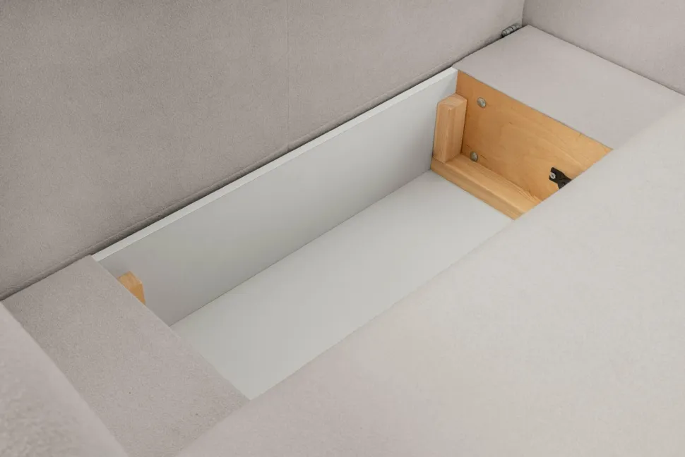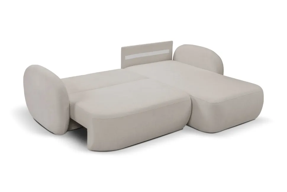 Narożnik Salby z funkcją spania jest idealny do codziennego użytku. Dzięki praktycznej funkcji spania, sofa może służyć jako miejsce do relaksu w ciągu dnia, a także jako wygodne łóżko na noc. Posiada pojemnik na pościel, co jest szczególnie przydatne w niewielkich pomieszczeniach, gdzie każdy centymetr jest na wagę złota.
