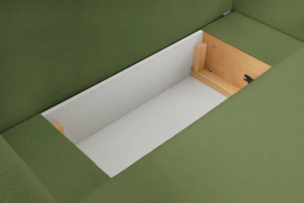 Narożnik Salby posiada nie tylko elegancki wygląd, ale również wiele praktycznych funkcji. Wyposażony jest w pojemnik na pościel, co pozwoli Ci zaoszczędzić miejsce w domu. Ponadto, sofa posiada funkcję spania – idealną dla niespodziewanych gości czy przytulnych wieczorów z filmem. Wygodne siedzisko i miękkie podłokietniki sprawią, że każda chwila spędzona na sofie będzie prawdziwą przyjemnością.