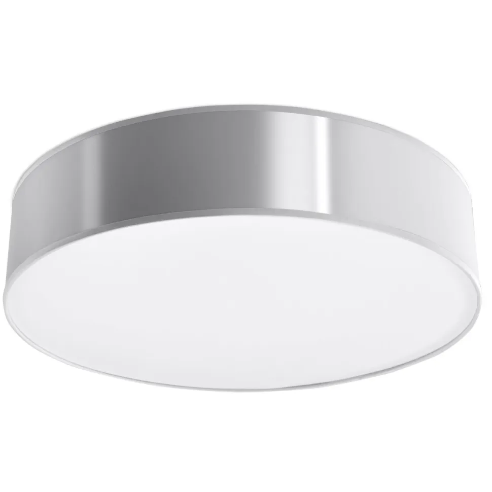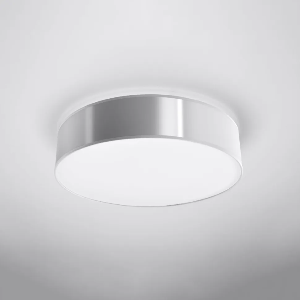 Okrągły plafon Arenadostępny jest w wielu konfiguracjach. Do wyboru oferujemy Ci szary, biały i czarny metalowy klosz. Jego kształt zbudowany jest cylindryczny, o czterech różnych średnicach: 25, 35, 45 i 55 cm. Mleczne tworzywo rozprowadza światło żarówki równomiernie po przestrzeni, zapewniając przyjemny dla oka efekt.Gwint E27 jest uniwersalnym wejściemdla żarówek tradycyjnych, LED czy energooszczędnych. Prosta forma to równieżduża łatwość czyszczenia.