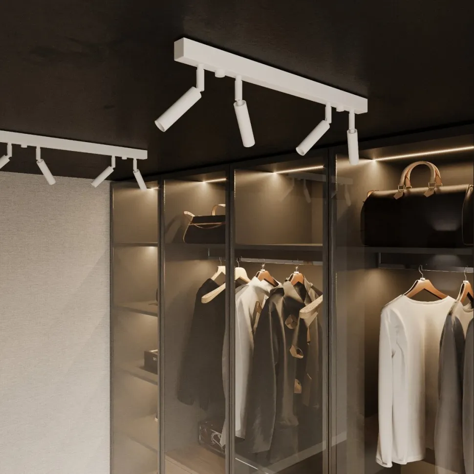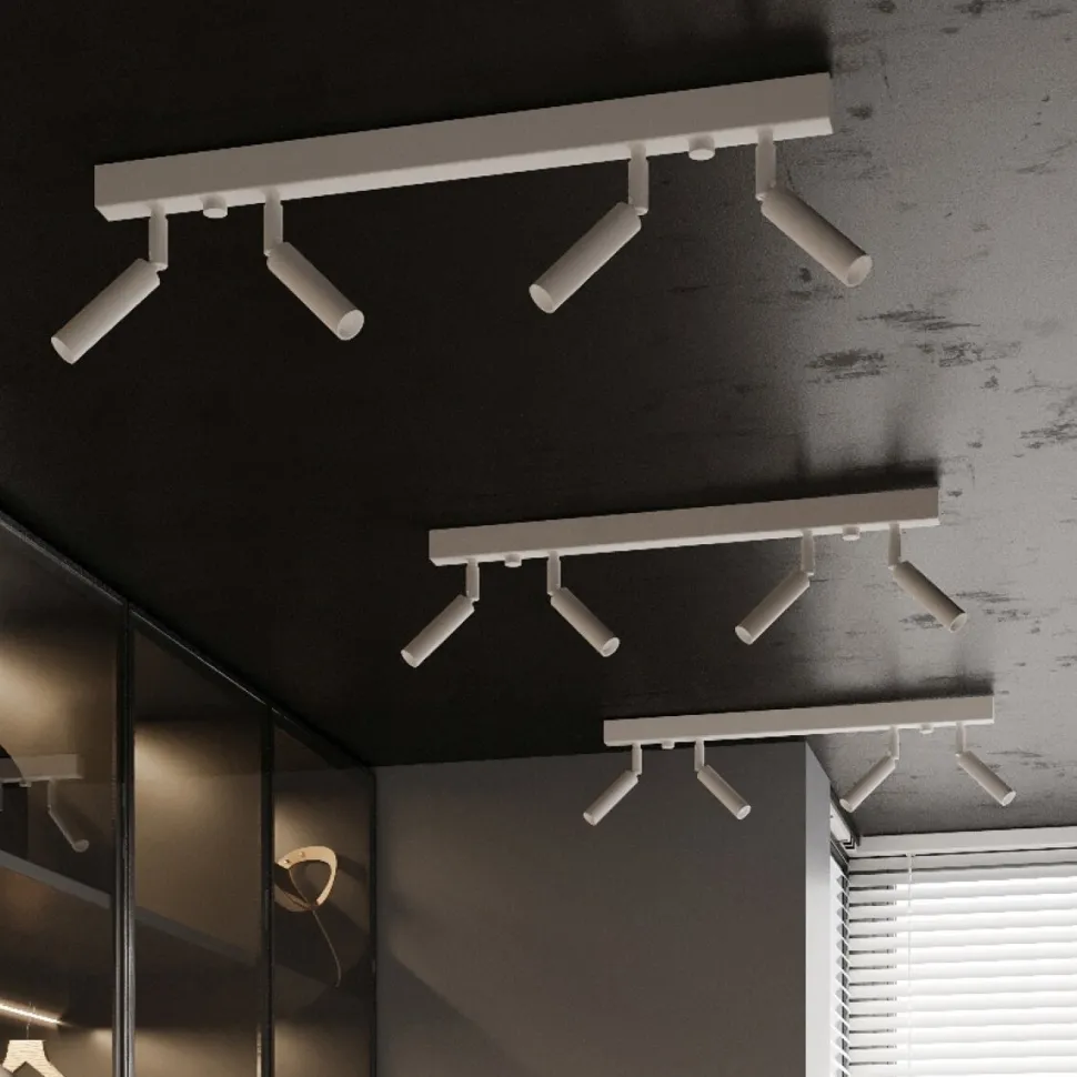 Plafon Eyetech to produkt o neutralnym charakterze. Jego industrialna i loftowa forma podkreśla surowość wnętrza lub wtapia się w nie zupełnie. Plafon zrobiony jest w formie listwy z ruchomymi lampkami. Każda z lampek zrobiona jest w cylindrycznym kształcie. Dzięki możliwości zmieniania kierunku strumienia światła, lampa staje się bardzo funkcjonalna i oświetlić można dowolny kąt przestrzeni. Pasować będzie zarówno do kuchni i przedpokoju, ale również do kawiarni, restauracji czy sklepu.