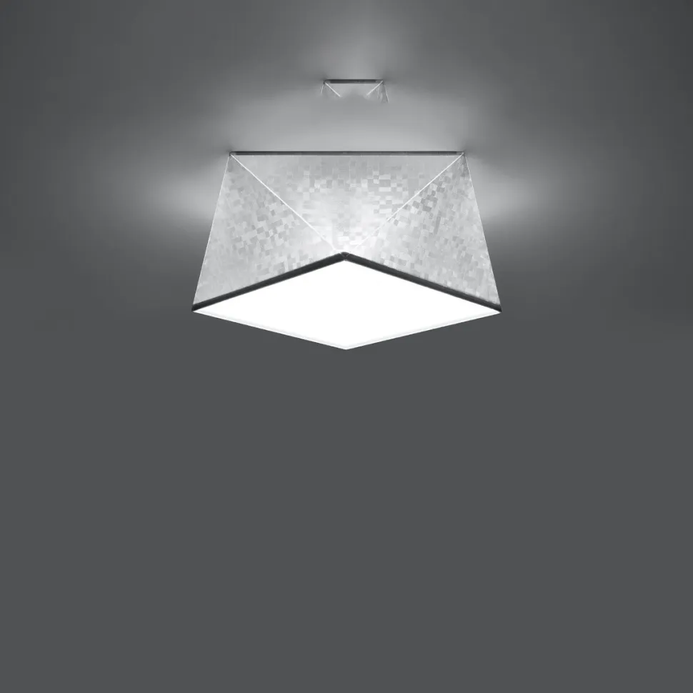 Plafon Hexa to lampa o bardzo ciekawej konstrukcji. Choć jej kształt wydaje się niesymetryczny, tak naprawdę jest bardzo geometryczny i najszersza część lampy zbudowana jest na bazie kwadratu. Regularne zagięcia dodają ciekawego efektu lampie, przez co staje się również niebanalną ozdobą wnętrza. Plafon świetnie pasować będzie do domowych przestrzeni takich jak sypialnia, kuchnia czy przedpokój. Sprawdzi się również w przestrzeniach kawiarni czy poczekalni.