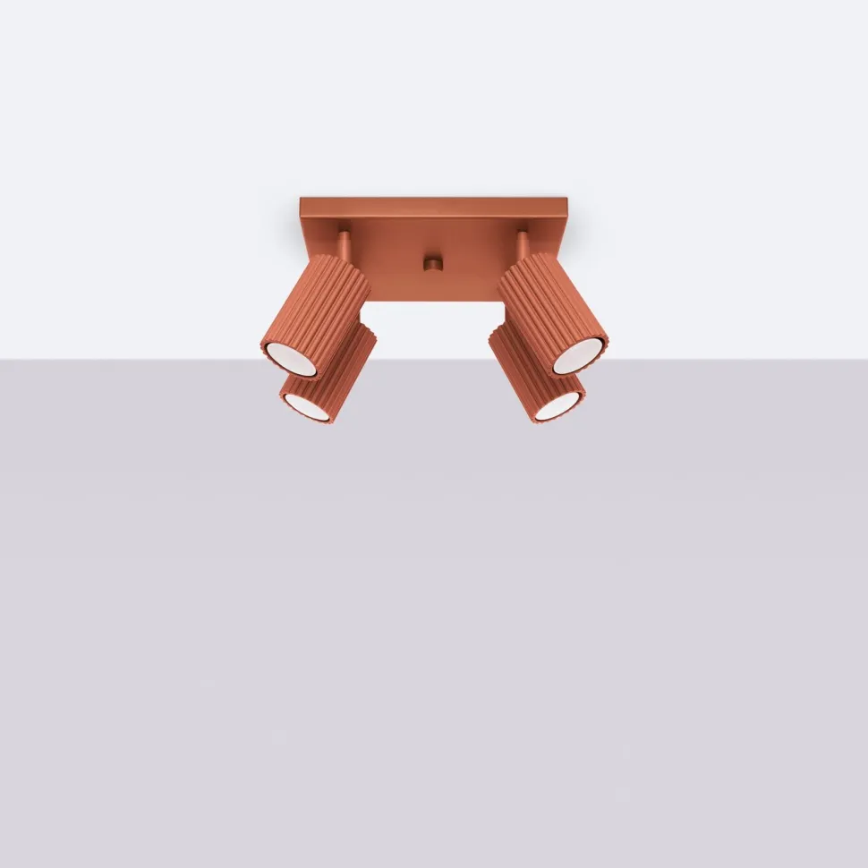 Plafon KARBON 4 ochra czerwona to propozycja dla osób ceniących nowoczesny design i oryginalne rozwiązania. Charakterystyczna ryflowana struktura lampy przyciąga wzrok i dodaje wnętrzu wyjątkowego charakteru. Dostępna w różnych konfiguracjach, idealnie sprawdzi się jako oświetlenie sufitowe, ścienna lampa czy lampa biurkowa. Dzięki szerokiemu wyborowi kolorów, w tym eleganckiej czerni, klasycznej bieli czy ciekawych odcieniach takich jak złoty, beżowy, zielony oliwkowy czy ochra czerwona, łatwo dopasujesz ją do stylu swojego wnętrza.