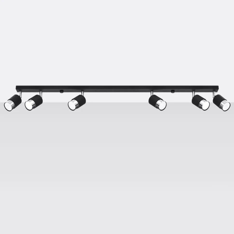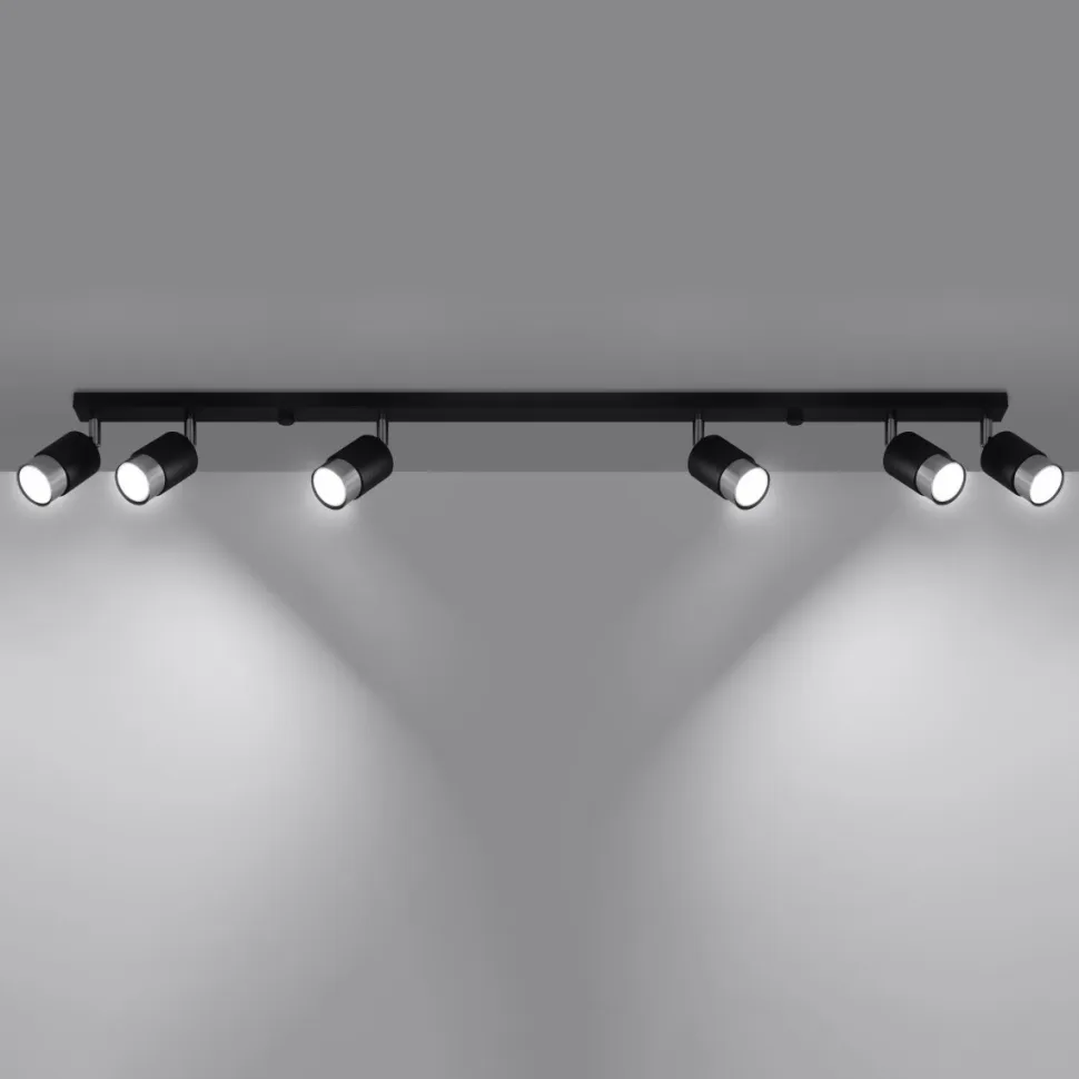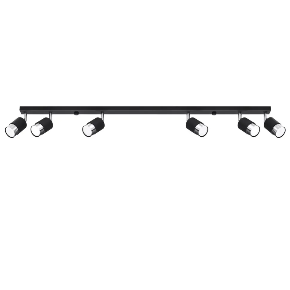 Plafon Nero to produkt bardzo wyraźnym loftowym stylu. Jegoindustrialna i ażurowa formapochodzi od prostego projektu opartego na kształcie listwy z cylindrycznymi lampkami.Każde ze źródeł światła jest ruchome, przez co oświetlić można zarówno całość przestrzeni, jak też jeden z jej fragmentów tworząc nastrojowy klimat.Nero to czarna, stalowa lampa z dodatkami detali w dwóch odcieniach metali: chromu i złota. Pasować będzie zarówno do przedpokoju, kuchni czy sypialni.