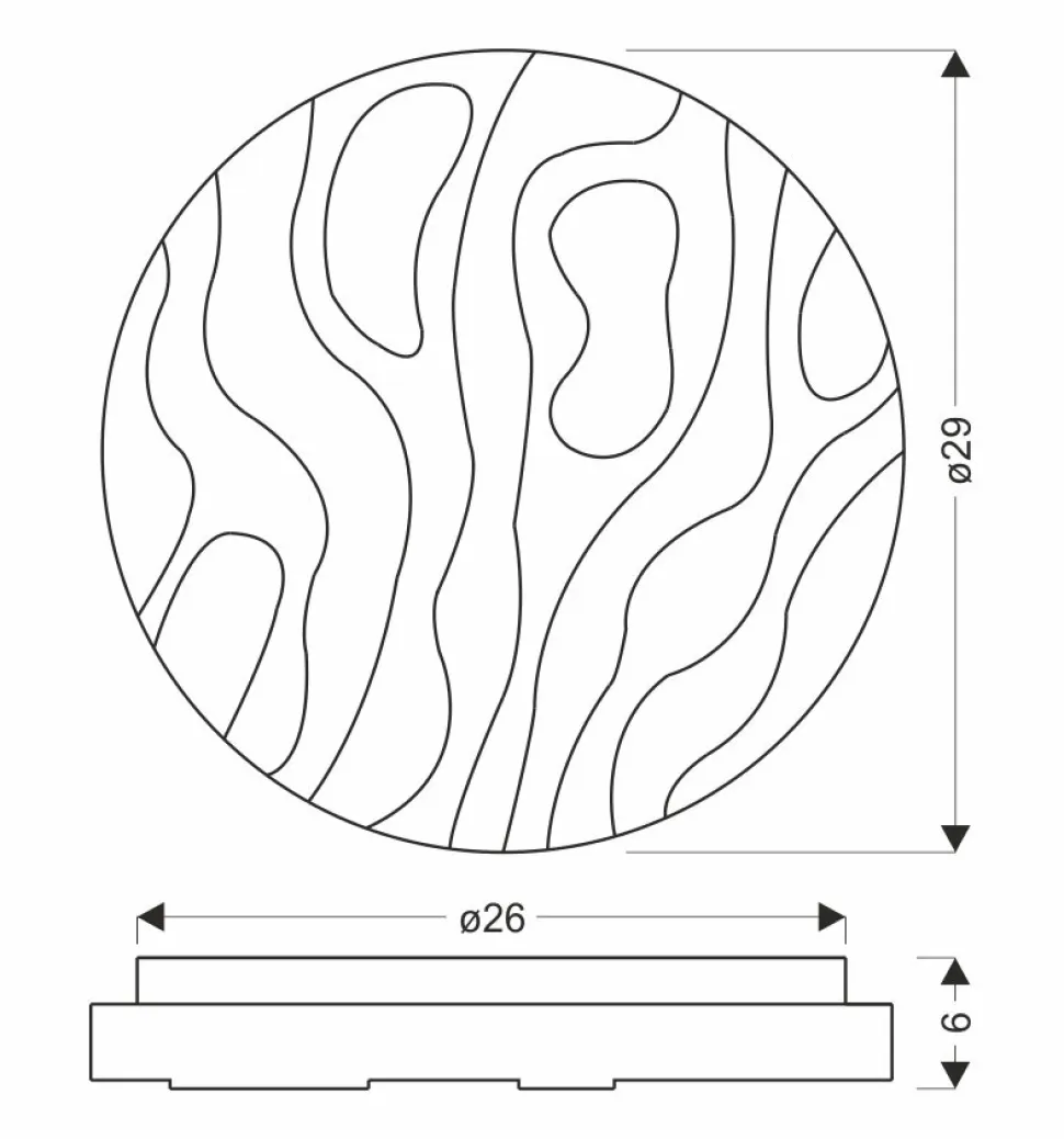 - Średnica lampy wynosi 29 cm, co sprawia, że jest ona idealna do montażu w różnych pomieszczeniach.