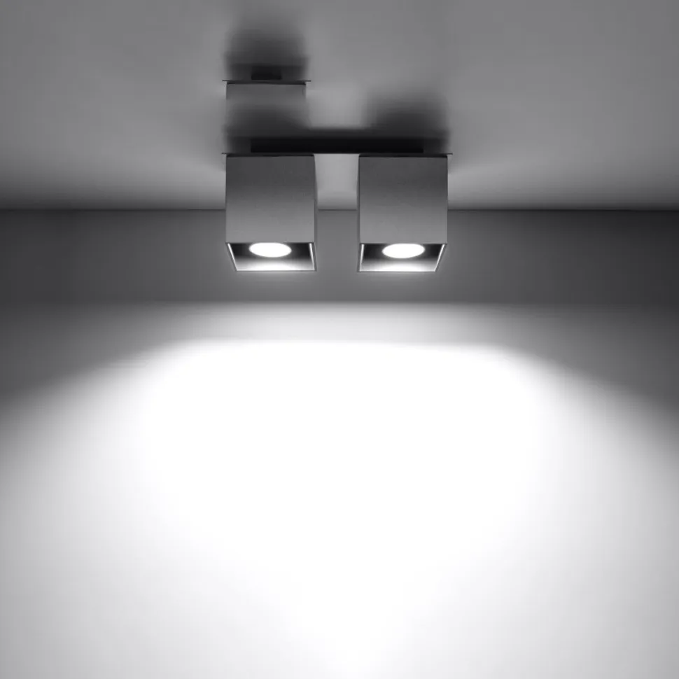 Plafon Quad dostępny jest w różnych opcjach. Dostępny jest w formie sześcianu, wydłużonego prostopadłościanu lub połączenia dwóch form. Wyborowi podlega również kolor lampy. Dostępne są takie kolory jak szary, biały, czarny i kilka innych. Dzięki temu plafon pasował będzie zarówno do przedpokoju, jak i salonu lub sypialni. Sprawdzi się nawet w przestrzeniach komercyjnych jak restauracja, sklep czy hotel.