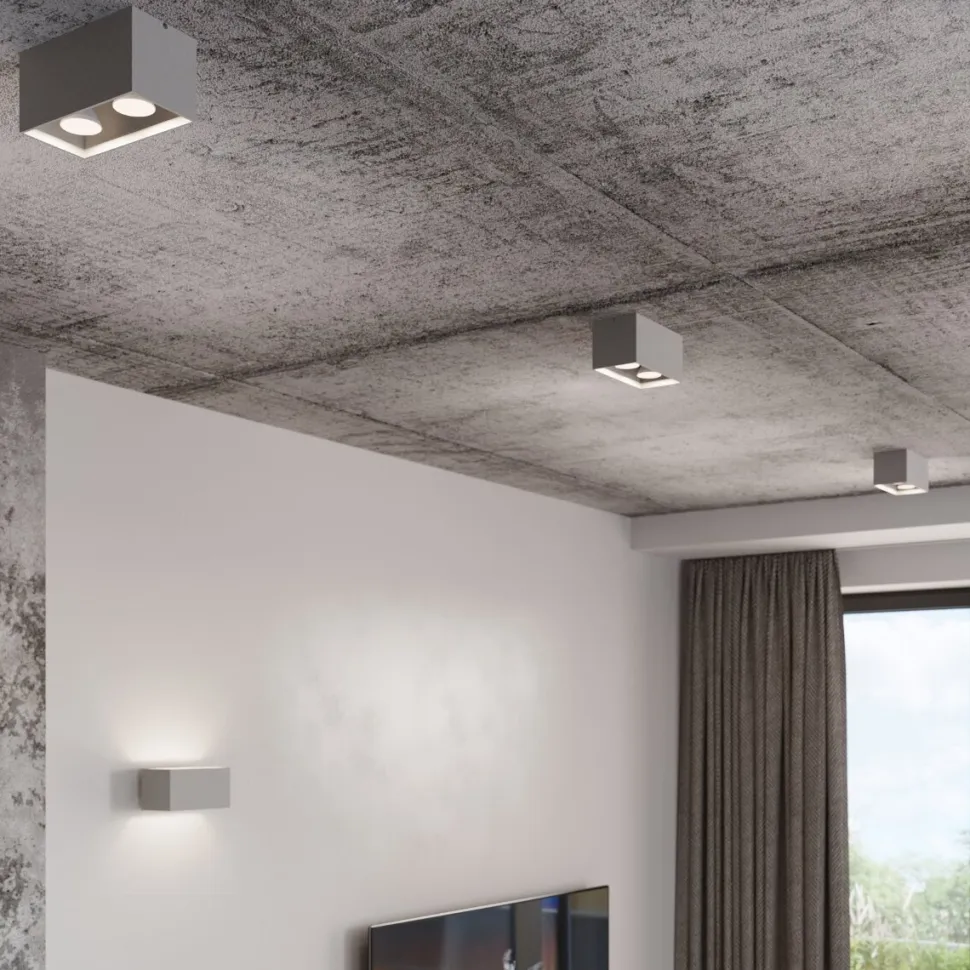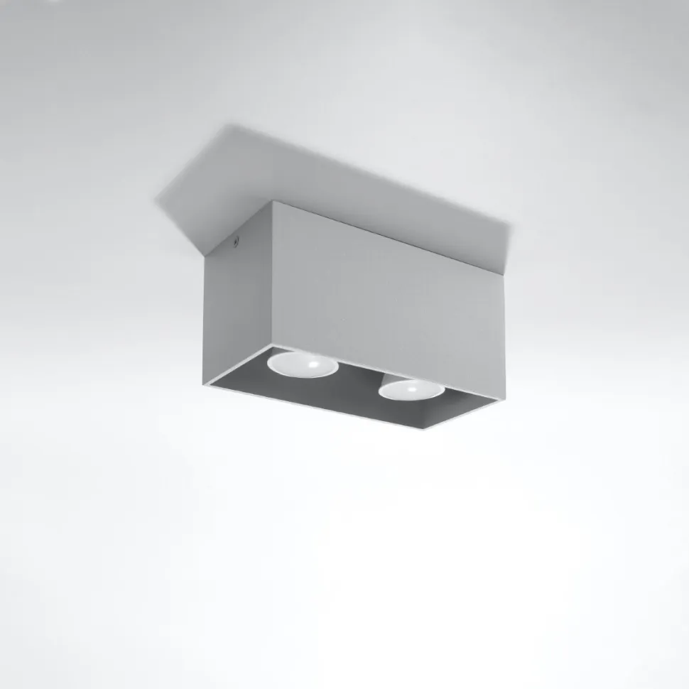 Plafon Quad dostępny jest w różnych opcjach. Dostępny jest w formie sześcianu, wydłużonego prostopadłościanu lub połączenia dwóch form. Wyborowi podlega również kolor lampy. Dostępne są takie kolory jak szary, biały, czarny i kilka innych. Dzięki temu plafon pasował będzie zarówno do przedpokoju, jak i salonu lub sypialni. Sprawdzi się nawet w przestrzeniach komercyjnych jak restauracja, sklep czy hotel.