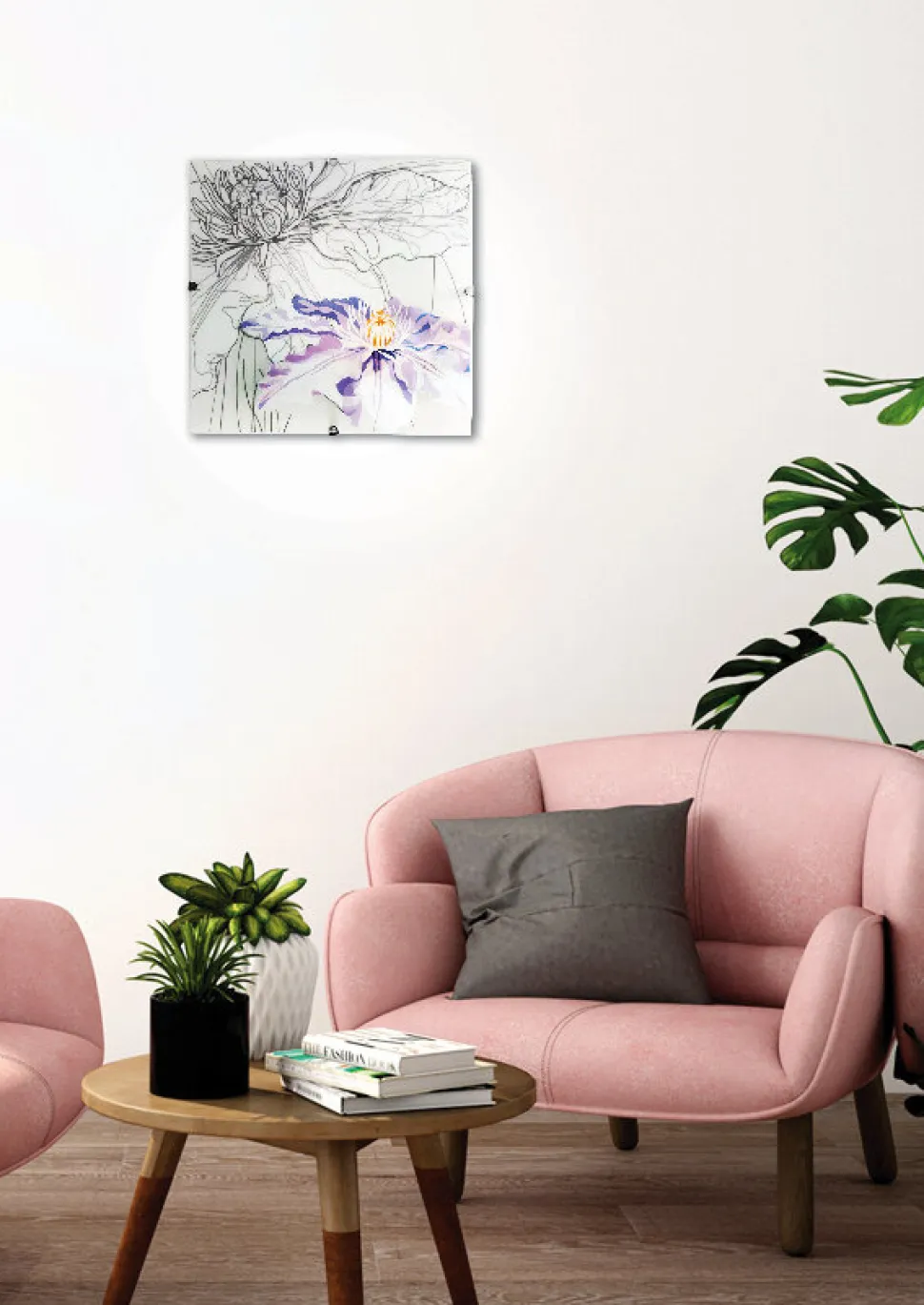 Plafon Spring 30×30 1x60W E27 fioletowy to wyjątkowy produkt, który łączy w sobie minimalizm, nowoczesność i klasyczne piękno. Wykonany z połączenia szkła i stali, oferuje trwałość i odporność na zarysowania. Unikalny, kwiatowy wzór dodaje mu uroku, a zastosowanie metody kalkomanii sprawia, że jest on odporny na zarysowania i delikatne czyszczenie. Fioletowy kolor dodaje mu wyrazistości i podkreśla indywidualny charakter każdego wnętrza.