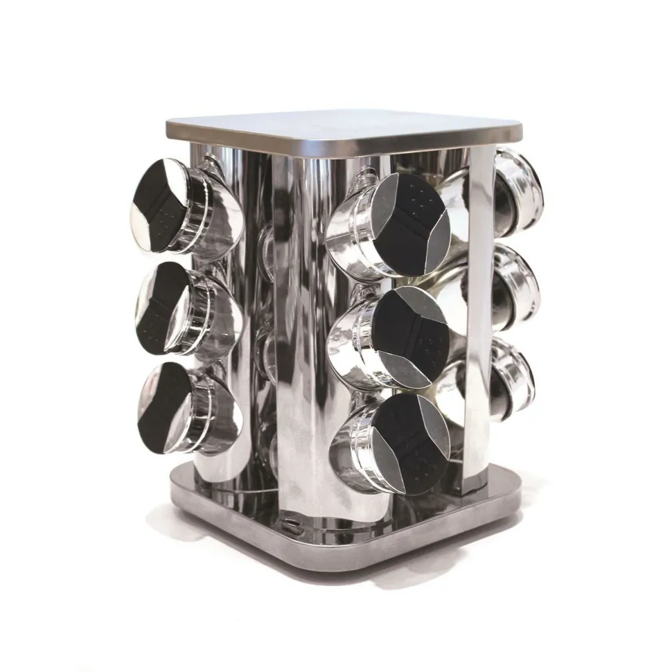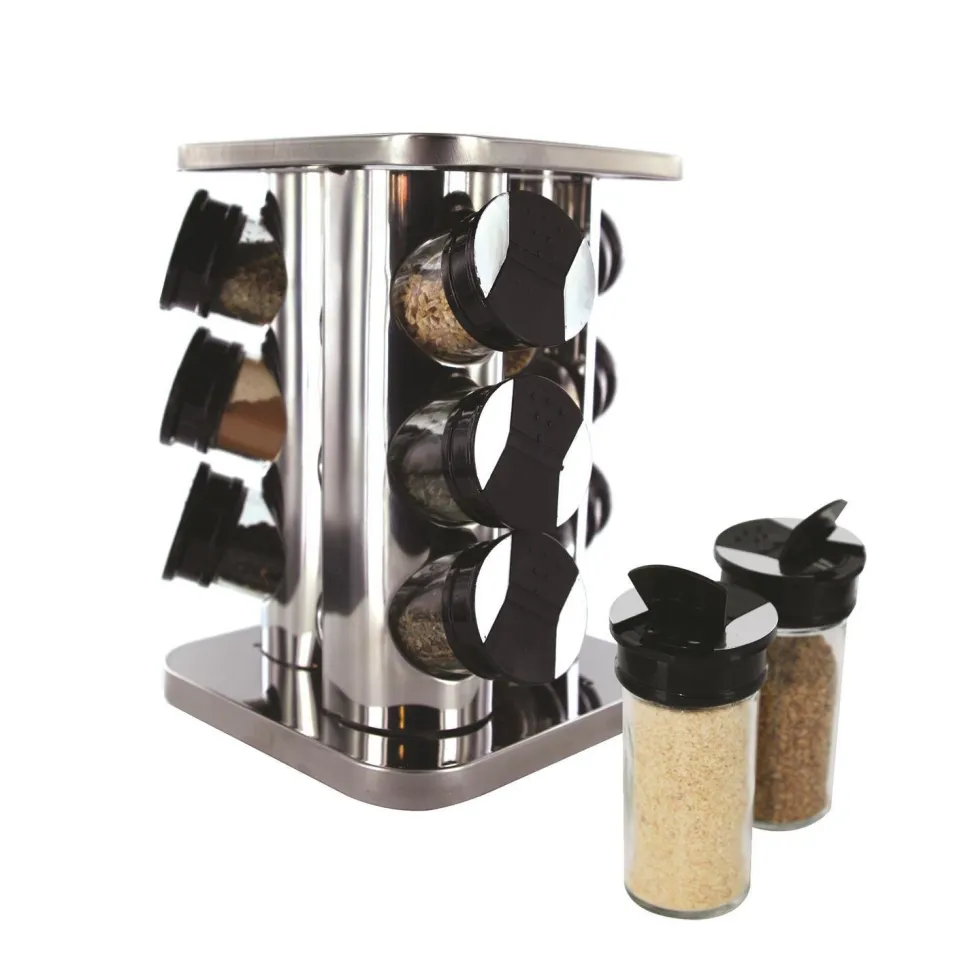 Szukasz sposobu na łatwe przechowywanie swoich przypraw? Nie szukaj dalej niż stojak na przyprawy Carousel. Wykonany jest z połączenia metalu, szkła i plastiku, ten 9-pojemnikowy stojak na przyprawy doda klasycznego wyglądu do każdego wystroju, pozwalając Ci przechowywać przyprawy w wygodny i estetyczny sposób.