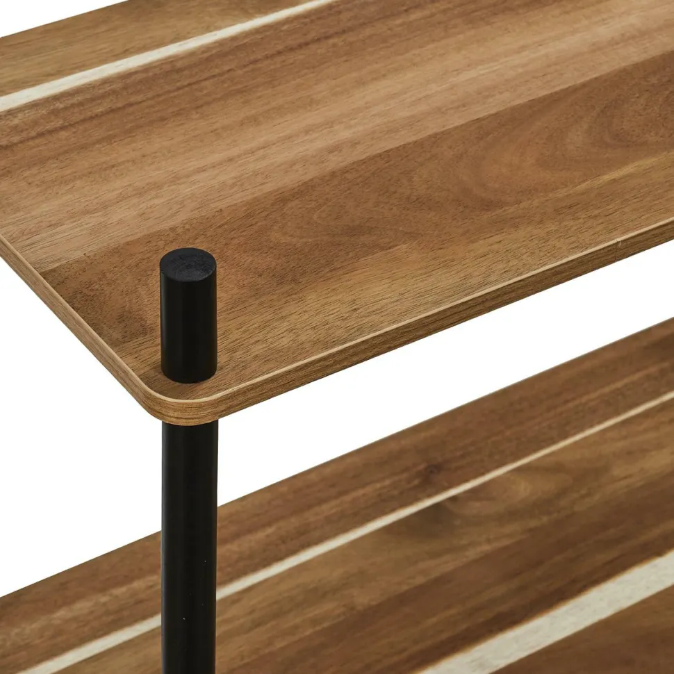 Prezentowana półka dostępna jest w kolorze czarnym z naturalnymi elementami, co nadaje jej eleganckiego i nowoczesnego charakteru. Taka kolorystyka sprawia, że półka będzie pasować do różnych stylów wnętrz – od industrialnych, przez rustykalne, aż po minimalistyczne.