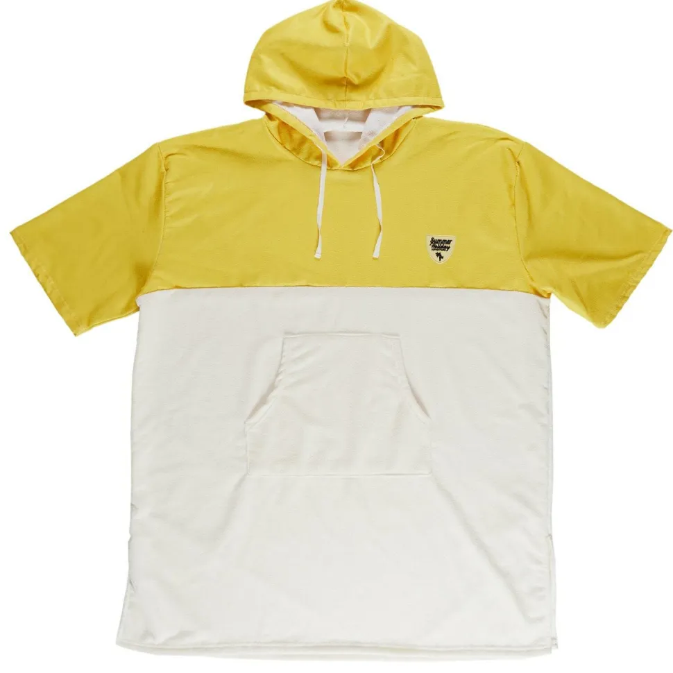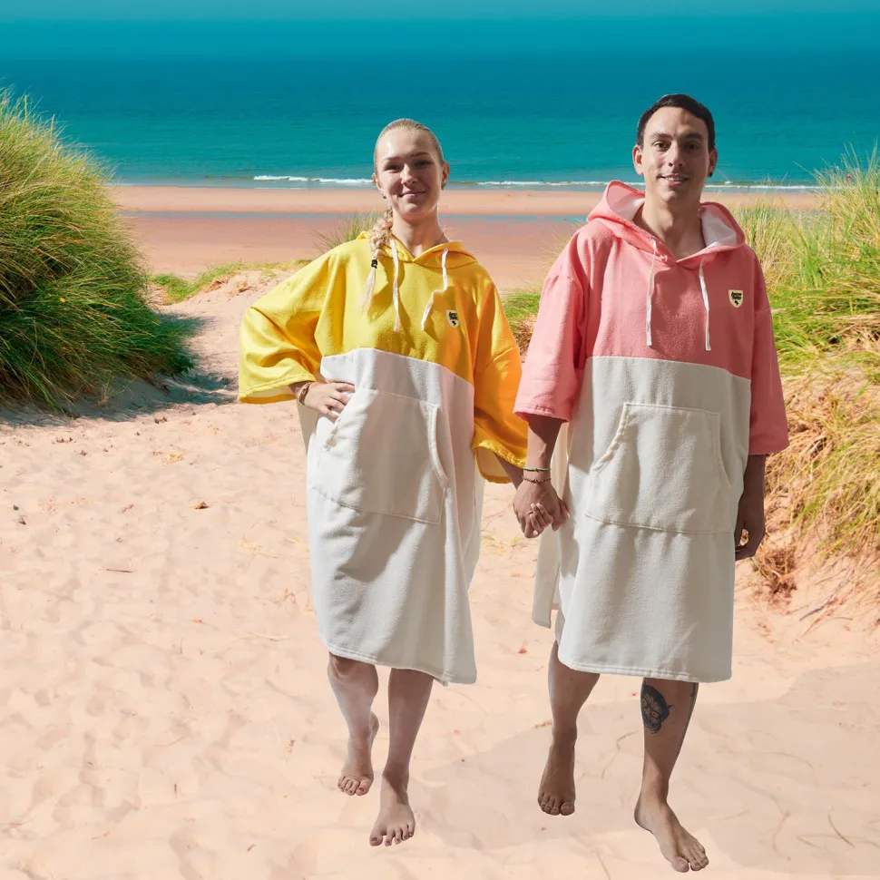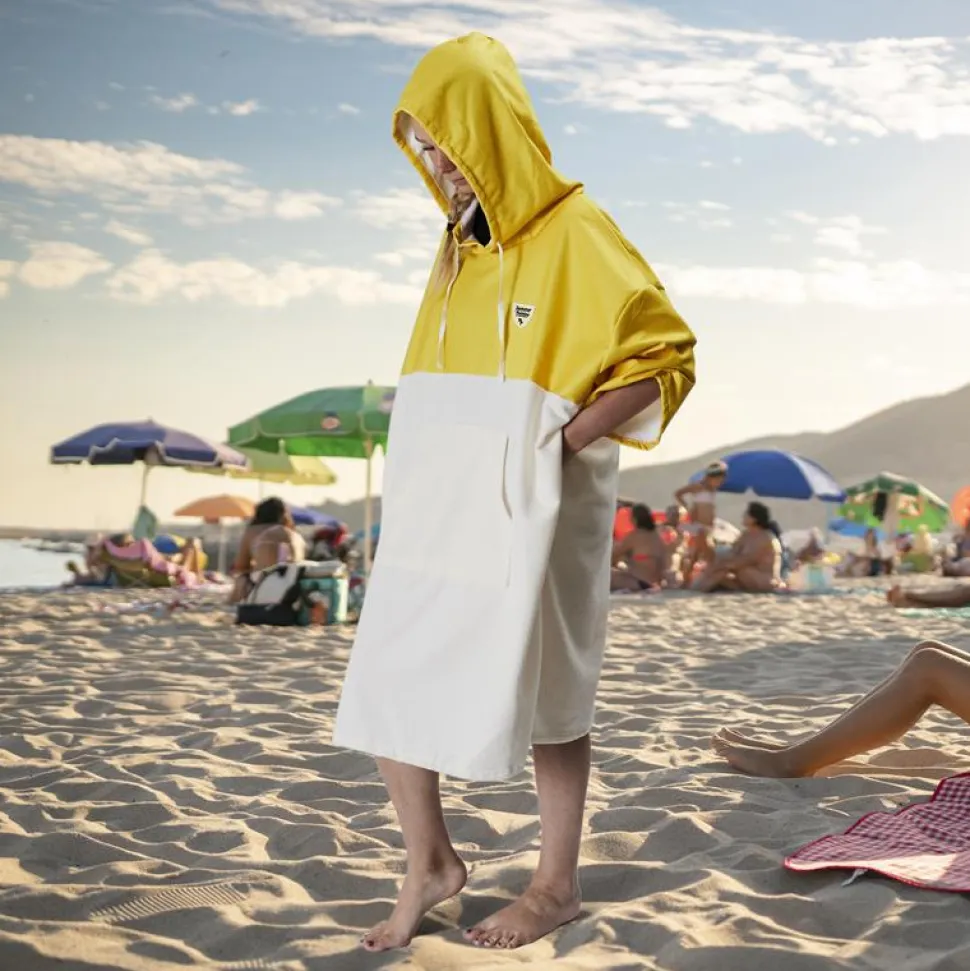 Ponczo wykonane z wchłaniającej wodę tkaniny frotte (100% poliester) sprawdzi się nie tylko na egzotycznej plaży ale również na wypadzie nad jezioro lub choćby basen. Ponczo z kapturem pozwoli wytrzeć zarówno ciało jak i mokre włosy. Ponczo posiada ściągacz w kapturze oraz kieszonkę na brzuchu. Występuje w dwóch wariantach kolorystycznych. Ponczo jest luźne i ze względu na swoje uniwersalne wymiary pasuje na każdą osobę.