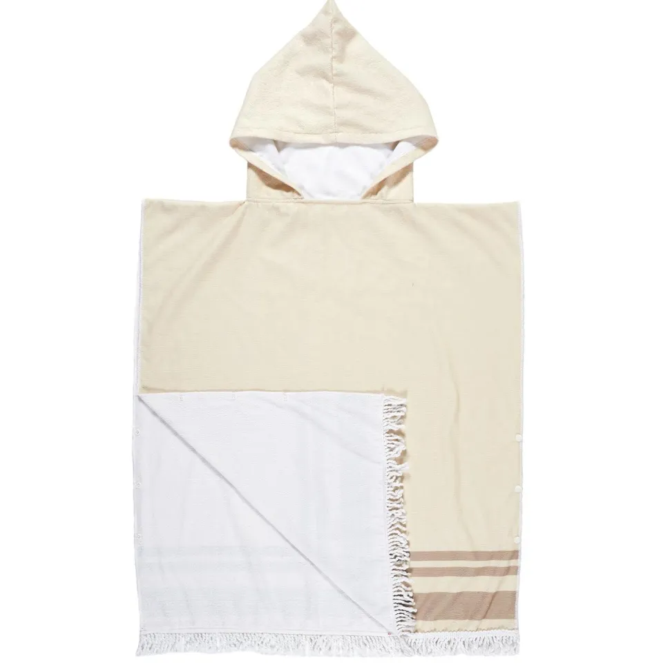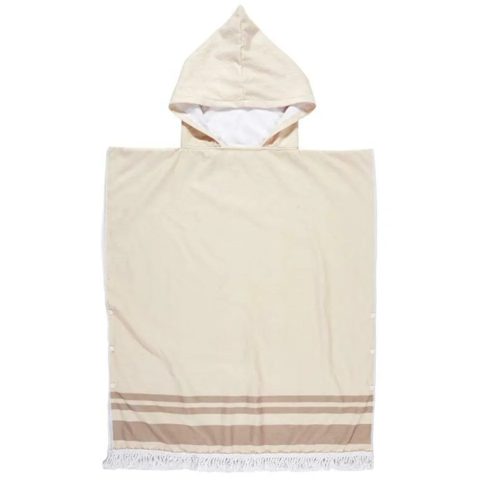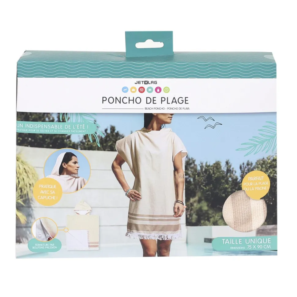Ponczo wykonane z wchłaniającej wodę tkaniny (100% poliester) sprawdzi się nie tylko na egzotycznej plaży ale również na wypadzie nad jezioro lub choćby basen. Ponczo z kapturem pozwoli wytrzeć zarówno ciało jak i mokre włosy. Ponczo w modnym jasnych kolorach ozdobione zostało chwostami, które dodają mu uroku i nawiązują do stylu boho. Ponczo jest luźne i ze względu na swoje uniwersalne wymiary pasuje na każdą osobę.