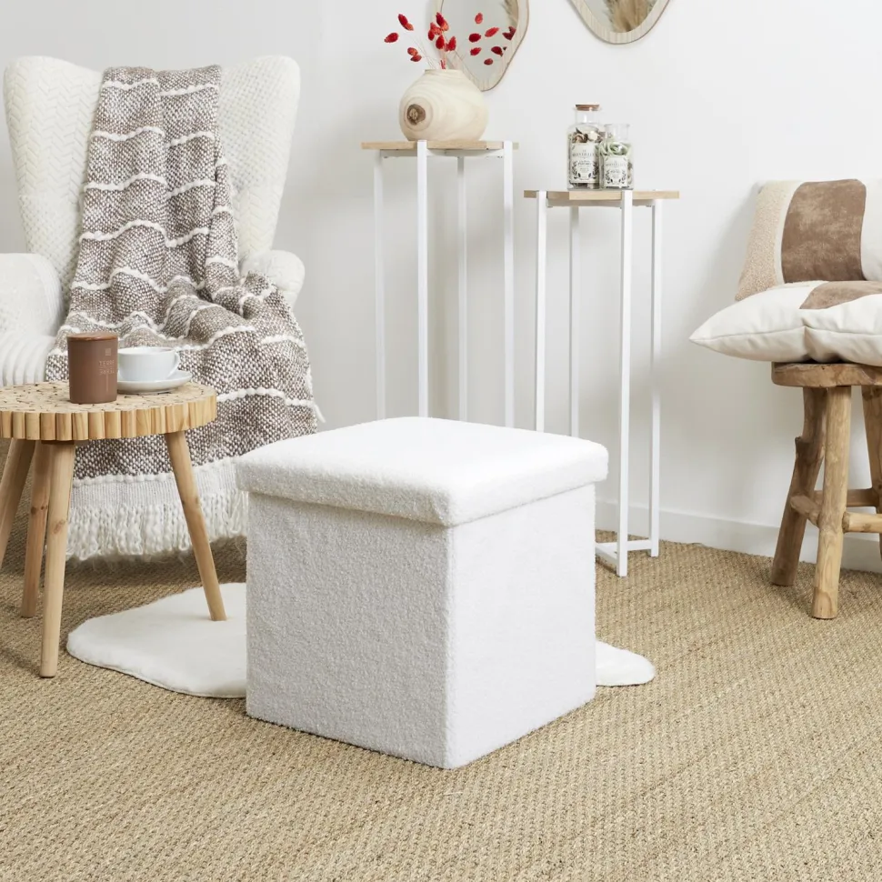 Pufa Intesi Vels Boucle biała składana – elegancja i funkcjonalność w jednym