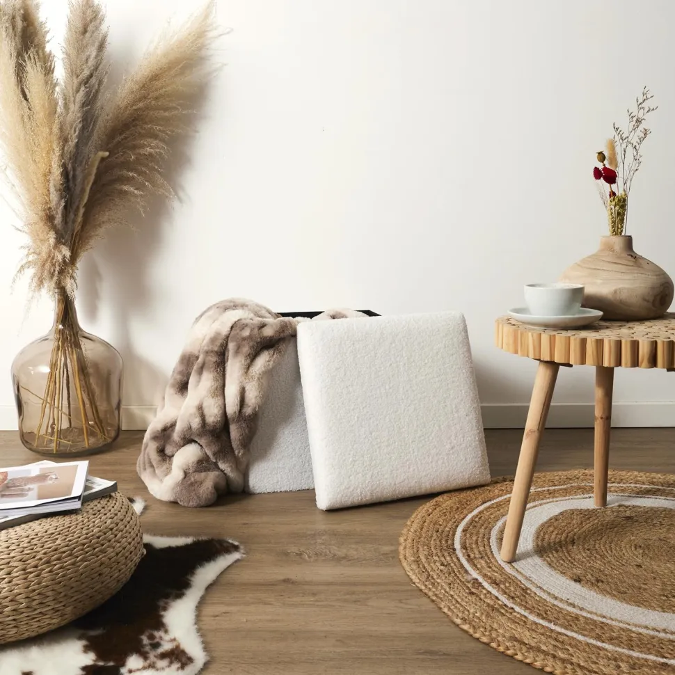 Intesi Vels Boucle to pufa w kolorze białym, który pasuje do każdego wnętrza. Dzięki uniwersalnej barwie, mebel ten idealnie wpasuje się zarówno do nowoczesnych, jak i klasycznych pomieszczeń. Biała pufa to także świetny wybór do pokoju młodzieżowego, sypialni czy salonu.