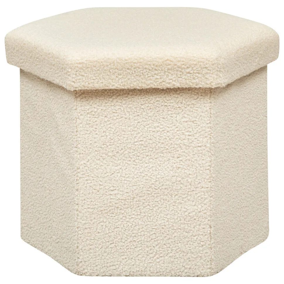 - Pufa Jaiko boucle beżowa to mebel 2 w 1 – służy jako siedzisko, schowek i boczny stolik