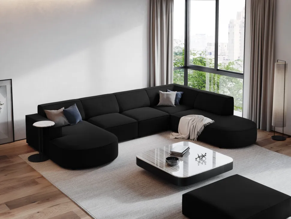Pufa Jodie Black Structured Fabric to połączenie wygody i elegancji, które wprowadzi do Twojego wnętrza niepowtarzalny klimat. Jej głębokie siedzisko gwarantuje najwyższy komfort użytkowania, a modułowa konstrukcja pozwala na dowolne aranżacje, dostosowane do Twoich potrzeb i upodobań. Dzięki niskim nogom, mebel ten prezentuje się niezwykle stylowo i nowocześnie, a jednocześnie niezwykle przytulnie.