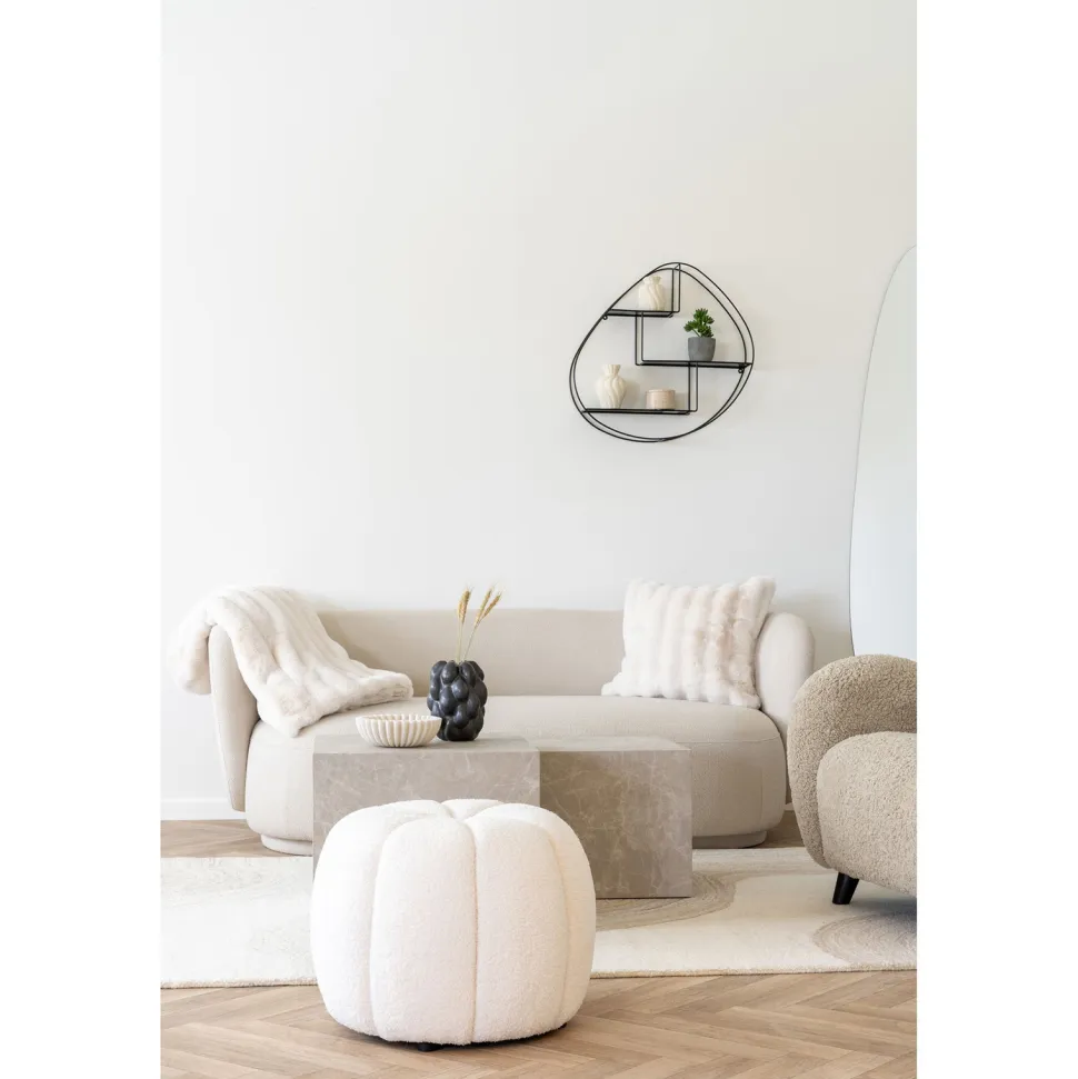 Design pufy Paisley to połączenie skandynawskiej prostoty z nutą glamour. Biały, pluszowy materiał zewnętrzny i czarna podstawa tworzą elegancki kontrast, który doda klasy każdemu wnętrzu. Pufa idealnie wpasuje się w aranżację salonu, sypialni, przedpokoju czy garderoby.