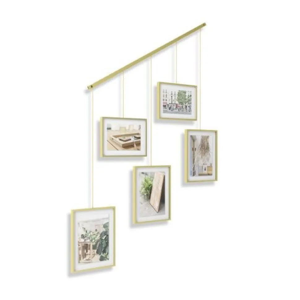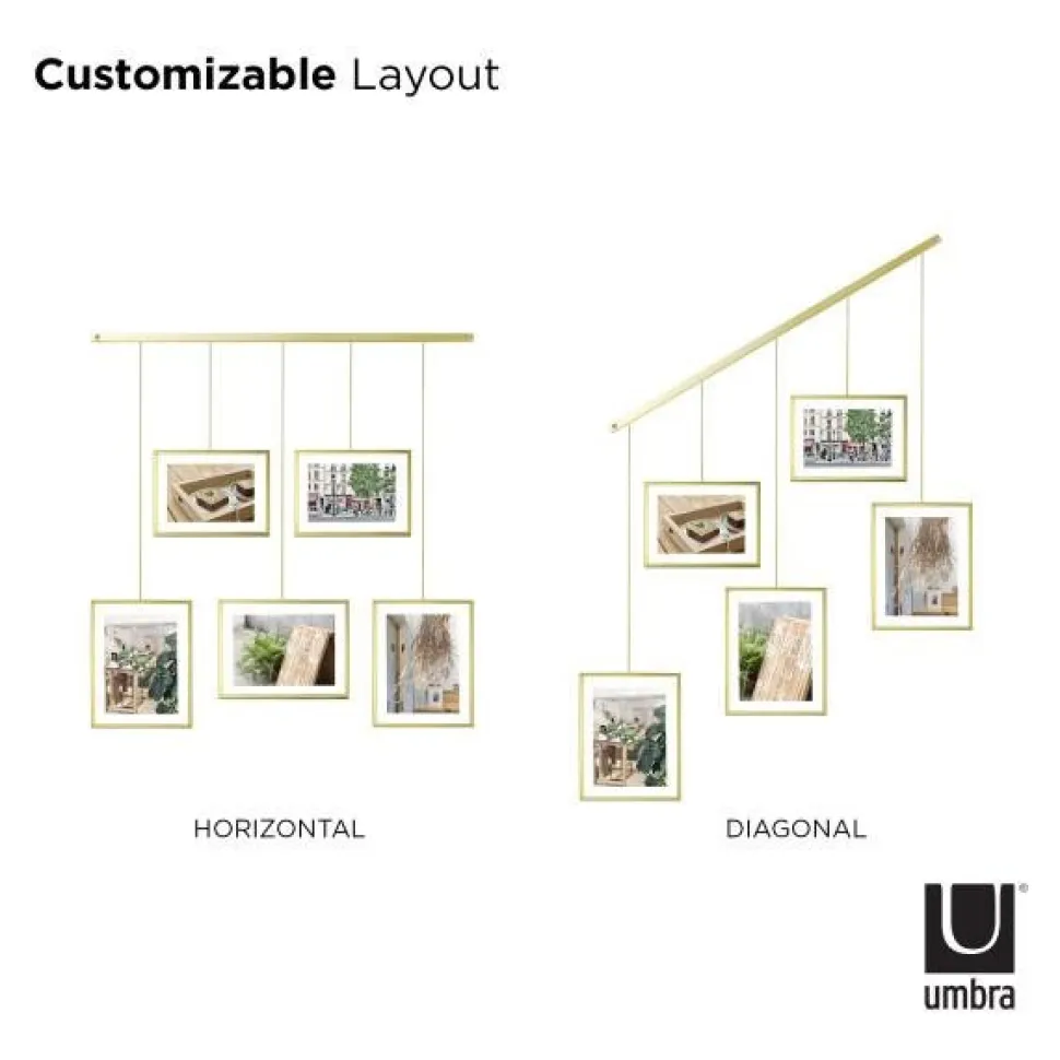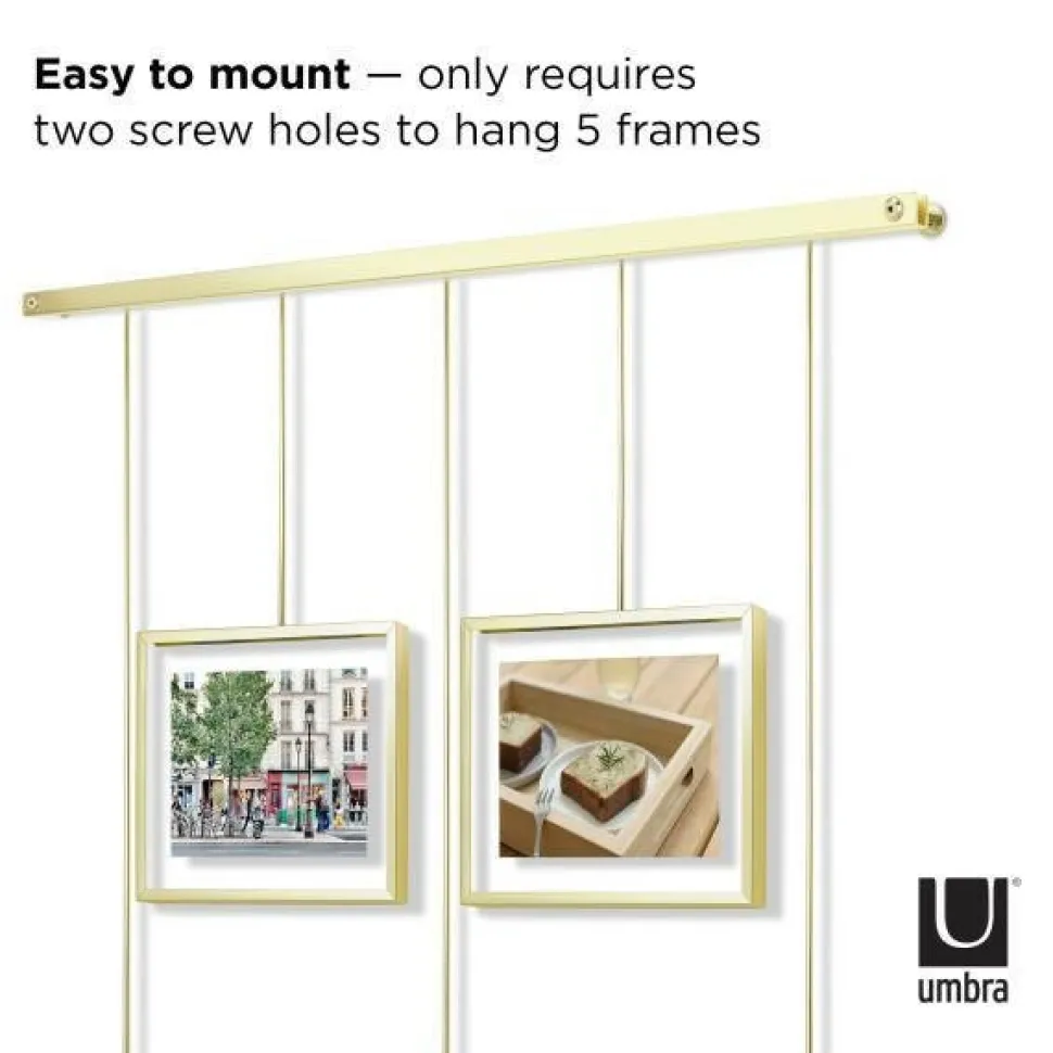 Wieszanie i poziomowanie wielu ramek do zdjęć na ścianie może być kłopotliwe. Idealnym rozwiązaniem na powieszenie wielu ulubionych zdjęć jest ramka Exhibit. Posiada ona listwę ze szczotkowanego metalu z klipsami i wspornikami do trzymania pięciu ramek na zdjęcia o różnych rozmiarach. Dzięki Exhibit możemy tworzyć ciekawe kolaże zdjęć, a wszystko to przy jednoczesnym zmniejszeniu uszkodzeń ścian. Wsporniki z ramkami są zawieszone na listwie, co umożliwia ich przesuwanie w celu tworzenia różnych układów zdjęć. Jego elastyczne właściwości zawieszenia w poziomie sprawiają, że Exhibit jest doskonałym dodatkiem do wieszania na ukos np. przy schodach.W ramki możemy umieścić zdjęcia maksymalnie o wymiarach 10x15cm oraz 13x18cm.