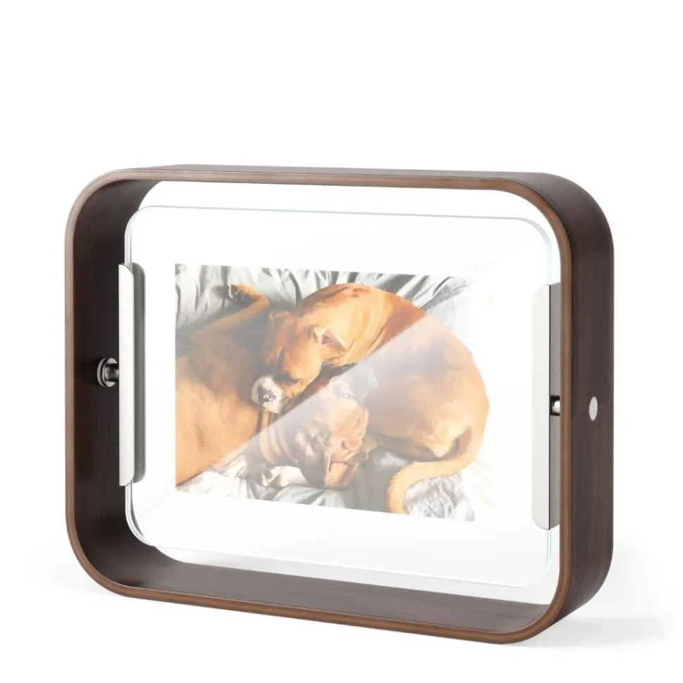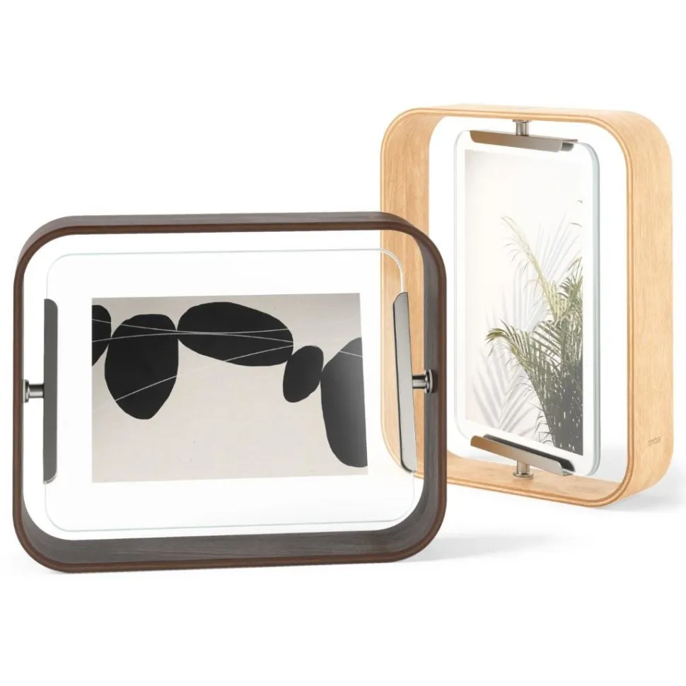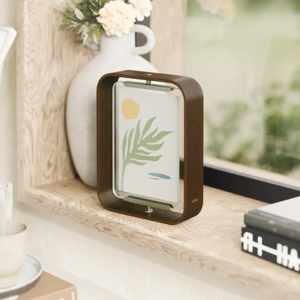 Bądź kreatywny dzięki stojącej ramce na zdjęcia Bellwood | Umbra Stojąca ramka na zdjęcia Bellwood firmy Umbra to ekologiczny i stylowy wybór do ekspozycji ulubionych zdjęć. Jej dwustronna, wszechstronna konstrukcja pozwala na obracanie zdjęć w celu uzyskania unikalnego wyglądu i pasuje do zdjęć o rozmiarze do 12,8 x 18 cm! Dodaj trochę uroku w stylu boho lub skandynawskim do każdego pomieszczenia dzięki ramce Bellwood. Przynieś do domu idealny element dekoracyjny w stylu boho z ramką na biurko Bellwood. Łącząc styl i zrównoważony rozwój, wytrzymała obustronna rama wykonana jest z połączenia drewna bukowego, topolowego, szkła oraz metalu, przez co jest zarówno nowoczesna, jak i przyjazna dla środowiska. Unikalna konstrukcja pozwala z łatwością dopasować ją do każdej przestrzeni. Można ją wygodnie obracać o 360 stopni, aby uzyskać niestandardowy wygląd, lub zmienić orientację zdjęcia. Jego minimalistyczny styl pasuje do zdjęć o wymiarach 12,8 x 18 cm, dając nieskończone możliwości wyboru zdjęć, które chcesz zatrzymać przy sobie. Wzbogać swój wystrój wnętrza i podnieś atmosferę swojego domu bez kompromisów w zakresie stylu lub wpływu na środowisko dzięki ramce na biurko Bellwood! O tym warto pamiętać! Wyeksponuj swoje ulubione zdjęcia, dodając jednocześnie uroku boho do swojego domu Unikalna, dwustronna ramka umożliwia obracanie zdjęć o 360 stopni Ekologiczna konstrukcja z drewna bukowego sprawia, że jest to nowoczesny i trwały wybór Łatwa zmiana orientacji zdjęcia Dodaj odrobinę natury i wyrafinowania do każdego pomieszczenia w domu