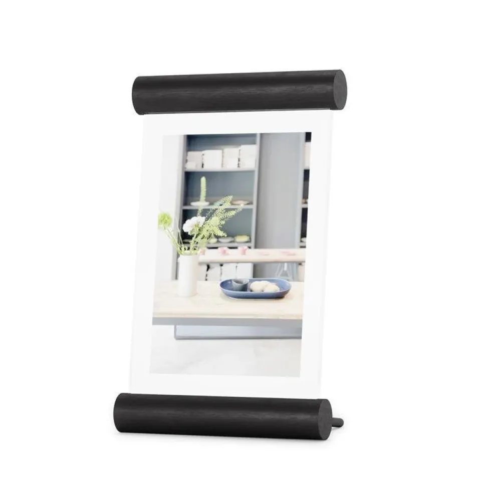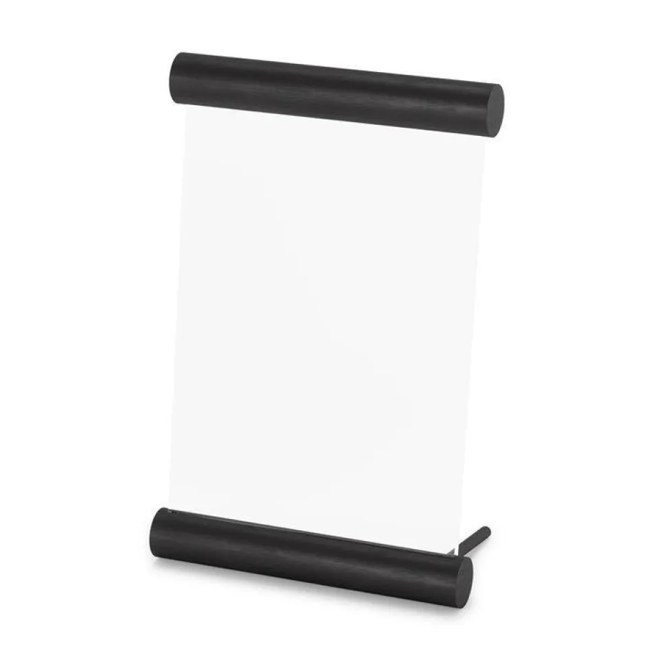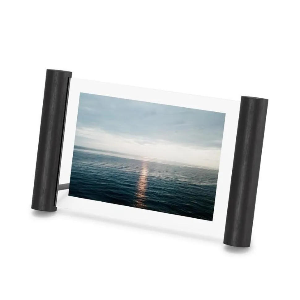 Szukasz nietypowej oprawy swoich zdjęć? Spodoba Ci się ramka na zdjęcia Scroll! Jest to wyjątkowo piękne połączenie dwóch szlachetnych materiałów — szkła i drewna. Pozbawiona zbędnych dekoracji zachwyca swoim minimalistycznym designem i elegancją. Dzięki niej w estetyczny sposób zaprezentujesz i oprawisz swoje ulubione uwiecznione wspomnienia. Ramka będzie też fantastycznym elementem dekoracyjnym, do którego możesz włożyć zasuszone kwiaty lub karteczki z cytatami, czyli wszystko, co chcesz uwiecznić. Wykonana z wytrzymałego szkła i drewnianych wałeczków w czarnej barwie będzie wyglądać pięknie na szafce nocnej lub biurku.