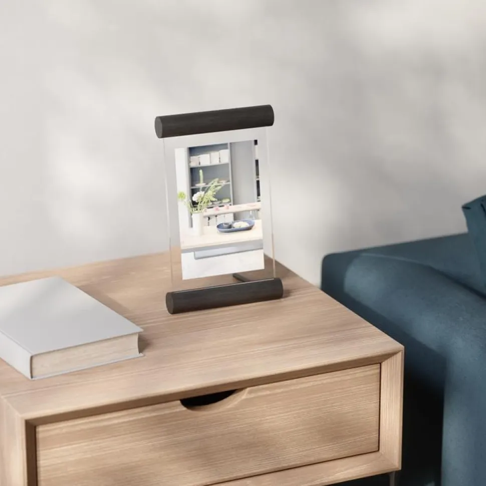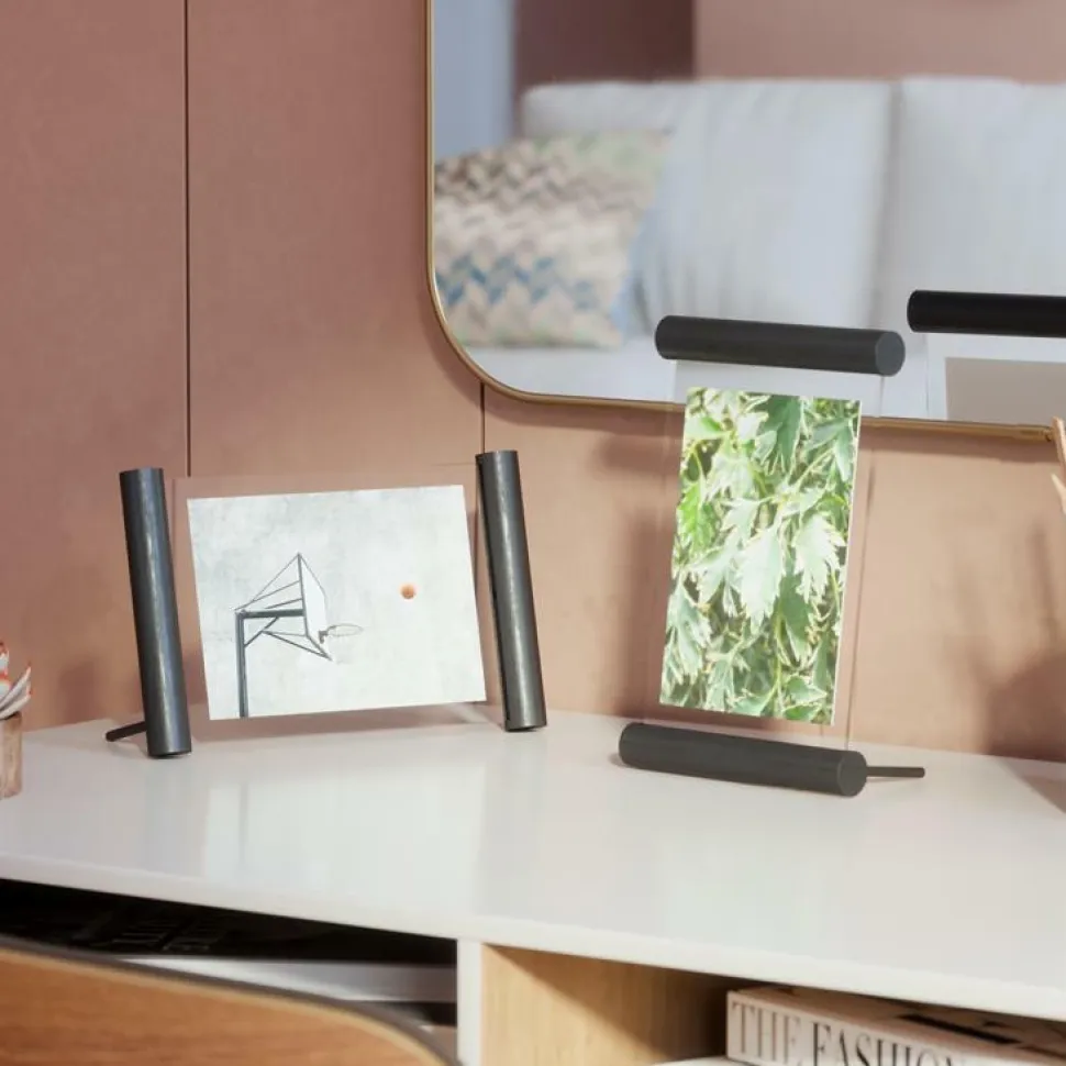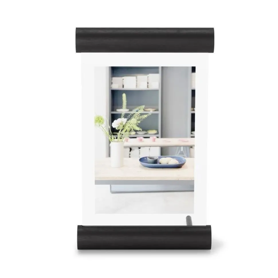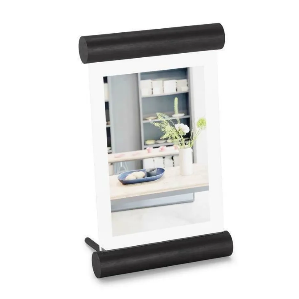 Szukasz nietypowej oprawy swoich zdjęć? Spodoba Ci się ramka na zdjęcia Scroll! Jest to wyjątkowo piękne połączenie dwóch szlachetnych materiałów — szkła i drewna. Pozbawiona zbędnych dekoracji zachwyca swoim minimalistycznym designem i elegancją. Dzięki niej w estetyczny sposób zaprezentujesz i oprawisz swoje ulubione uwiecznione wspomnienia. Ramka będzie też fantastycznym elementem dekoracyjnym, do którego możesz włożyć zasuszone kwiaty lub karteczki z cytatami, czyli wszystko, co chcesz uwiecznić. Wykonana z wytrzymałego szkła i drewnianych wałeczków w czarnej barwie będzie wyglądać pięknie na szafce nocnej lub biurku.