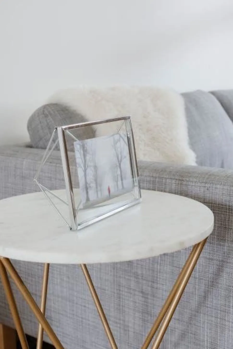 Prisma sprawdzi się zarówno jako dekoracja stołu, jak i rama ścienna, dzięki zastosowanemu drutowi w kształcie geometrycznym. Jest on zarówno funkcjonalny, jak i dekoracyjny, który dodaje element wymiarowy do płaskiego wyświetlacza, tworząc w ten sposób niebanalny element w wystroju wnętrza