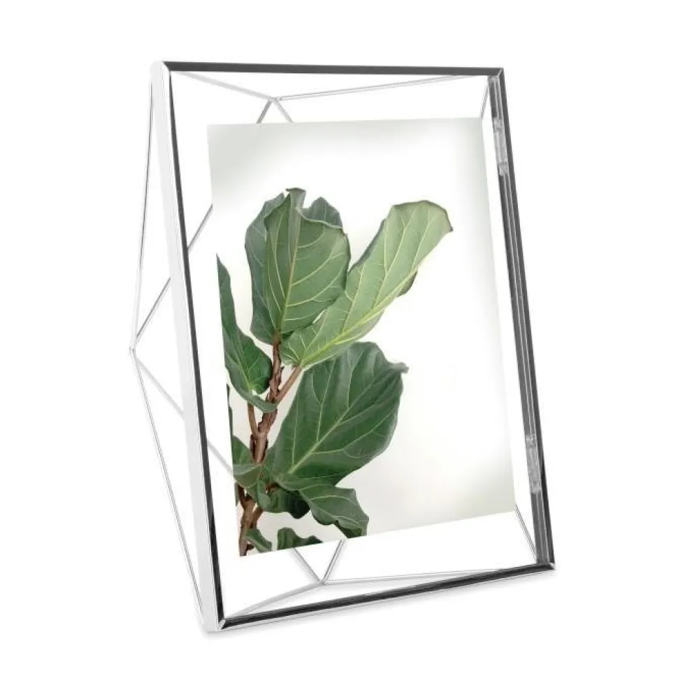 Ramka Prisma jest geometrycznym dodatkiem, który sprawdzi się w każdym wnętrzu. Wykonana została z metalu. Rama druciana uniesie twoje fotografie pomiędzy dwiema taflami szkła, a kształty drutu Prisma przebijające się z przodu ramy, stworzą efektowny i przyciągający wzrok element dekoracyjny.