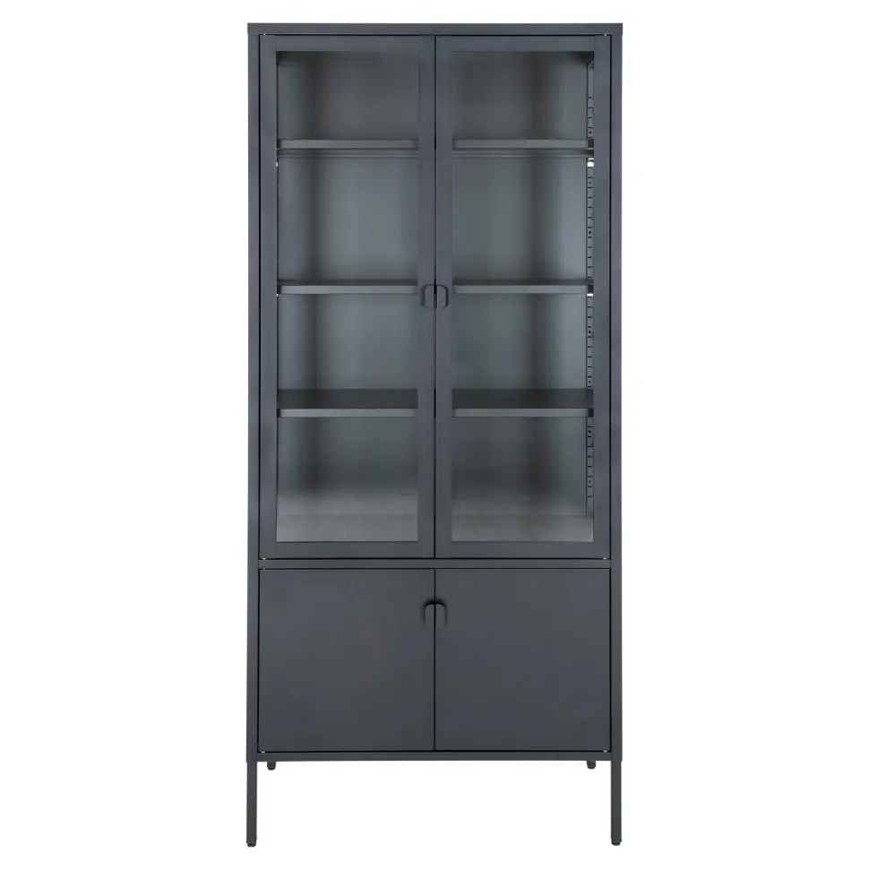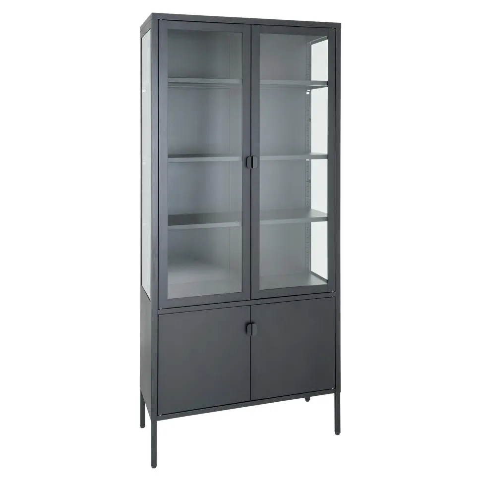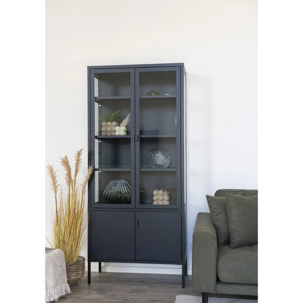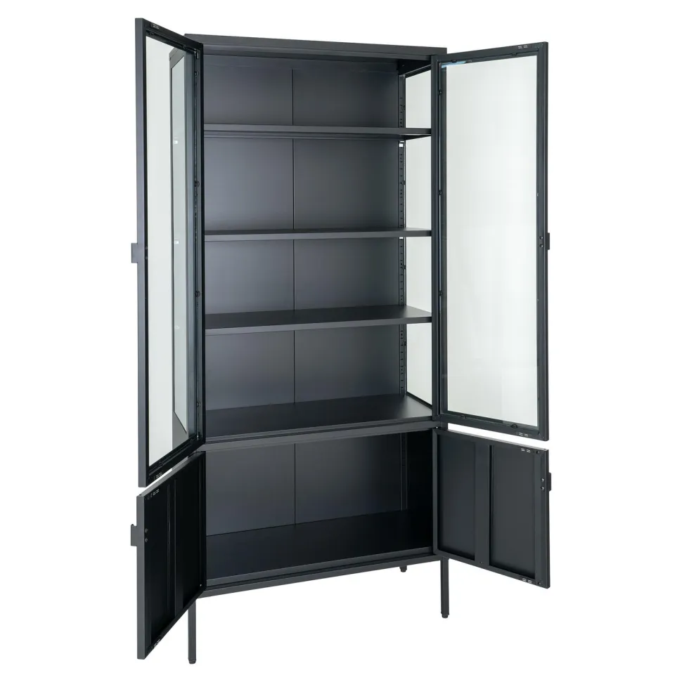 Produkty marki Intesi są znane ze swojej wysokiej jakości wykonania. Regał Brisbane 2 drzwi czarny nie jest wyjątkiem. Wykonany z wysokiej jakości materiałów – stali malowanej proszkowo i szkła, zapewnia trwałość i wytrzymałość na lata. Cztery metalowe nogi dodają mu stabilności. Regał ten nie tylko jest praktyczny, ale również elegancki – utrzymany w czarnym kolorze, pasuje do wielu stylów wnętrz.