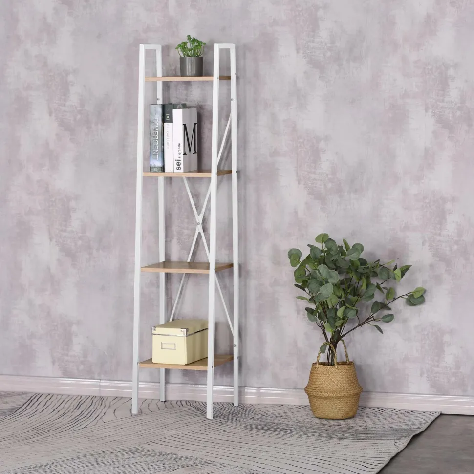 - metalowy regał otwarty z 4 półkami z płyty MDF