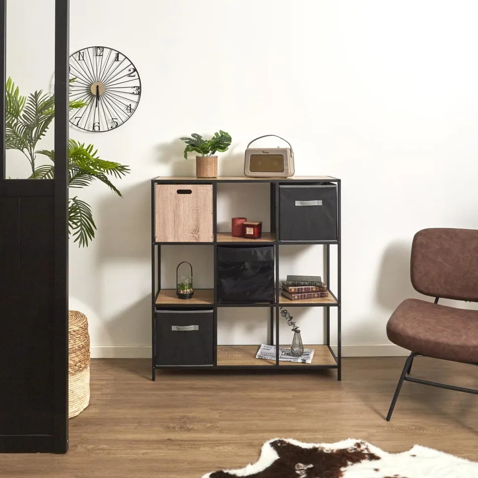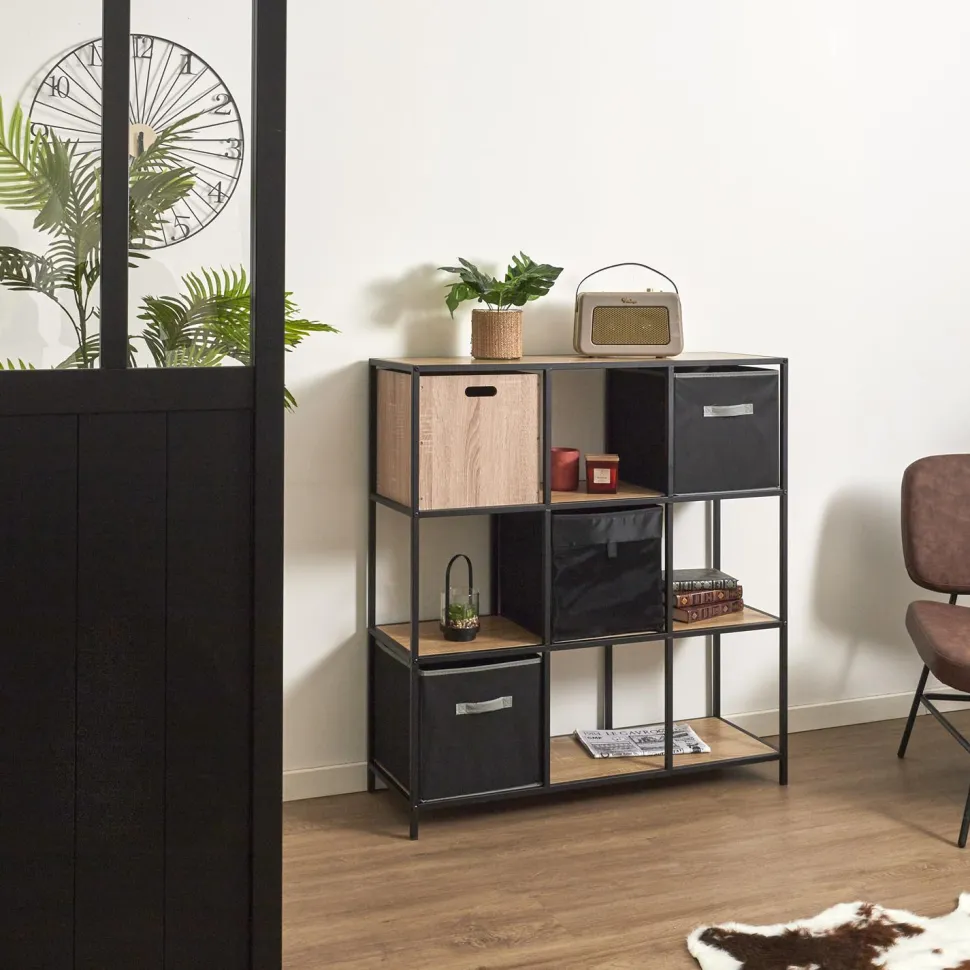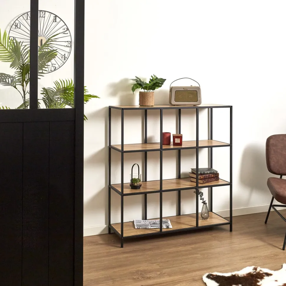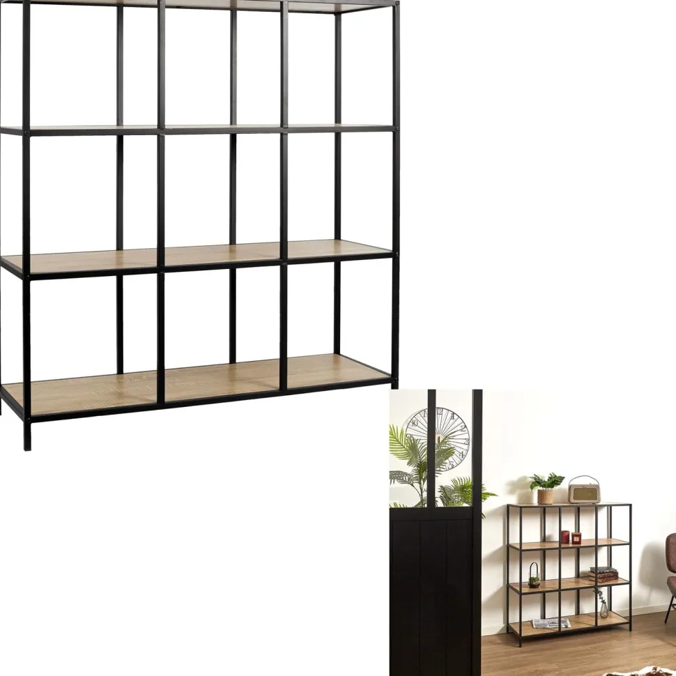 Regał Loka IX to nie tylko praktyczne rozwiązanie do przechowywania różnych przedmiotów, ale także stylowy dodatek do Twojego wnętrza. Dzięki minimalistycznej czarnej ramie i półkom z imitacją naturalnego dębu, regał pasuje do wielu różnych aranżacji pomieszczeń.