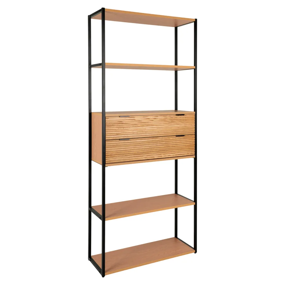 Regał Minato to produkt, który łączy w sobie nowoczesny design z funkcjonalnością. Wykonany z melaminy imitującej dąb, stalowej ramy w kolorze czarnym oraz płyty MDF, jest nie tylko estetycznie wykonany, ale również solidny i wytrzymały. Ten regał to doskonałe rozwiązanie dla osób ceniących sobie praktyczność i styl. Dzięki swoim wymiarom (szerokość: 84,5 cm, wysokość: 200 cm), Regał Minato pomieści wiele rzeczy, jednocześnie nie zajmując dużo miejsca.