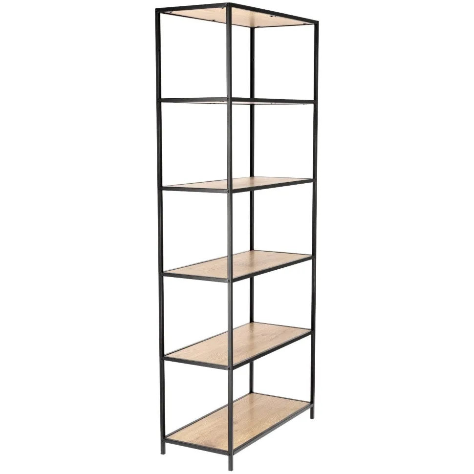 Regał Oxford IV idealnie wkomponuje się w minimalistyczne oraz loftowe wnętrza. Półki wykonane zostały z płyty MDF wykończonej laminatem w kolorze dębu doskonale łączą sie z metalową ramą malowaną proszkowo na kolor czarny. Doskonale sprawdzą się w restauracji, hotelu czy salonie.