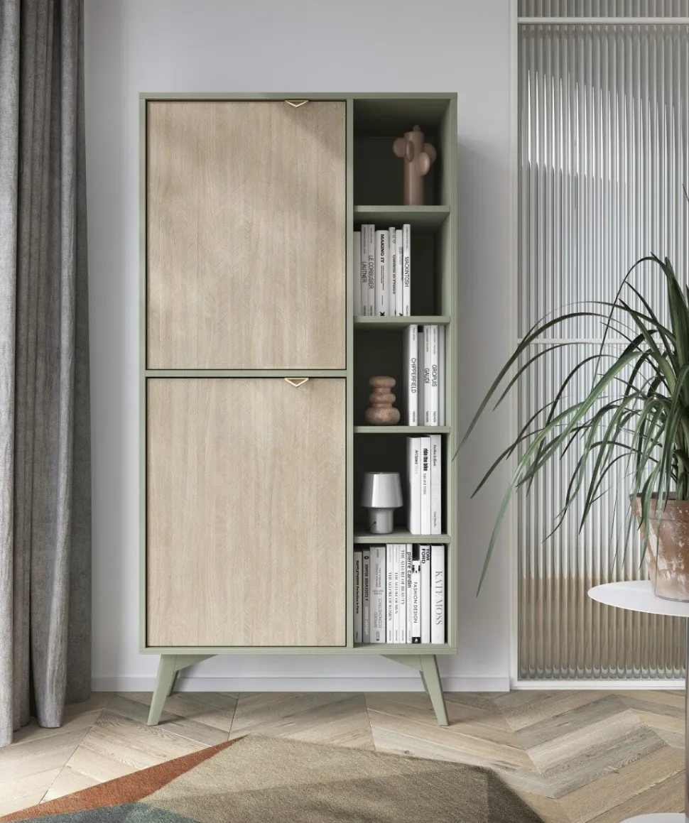 Wyjątkowy i pojemny regał do Twojego wnętrza! Regał Sage to ponadczasowepołączenie stylu boho ze stylem glamour.Nieoczywisty mebel łączy ze sobąnaturalne kolory i wzór w jodełkę ze złotymi, delikatnymi uchwytami. Regał stoi naczterech szeroko rozstawionych nóżkach, które dodają mu stabilności i lekkości. Posiadacztery półki oraz dwie szafkę, dzięki czemu bez problemu pomieścisz swoje rzeczy, zachowując porządek.Wzrok przyciągają również złote uchwyty,które nadają komodzie dodatkowego uroku i oryginalności. Drobny detal, który wpływa na ogólny wygląd i wrażenie estetyczne mebla. Prowadnica szuflad na łożysku kulkowym Häfele gwarantuje pełen wysuw.Regałjest częścią kolekcji Sage, co daje możliwość harmonijnego urządzenia całego mieszkania w jednolitym stylu.Pomimo swojego kompaktowego rozmiaru,oferuje wiele miejsca do przechowywania różnych przedmiotów.Szafki są idealne do przechowywania podręcznych rzeczy, a blat może posłużyć jako miejsce na dekoracje czy inne elementy wystroju. Nie czekaj dłużej i już dziś kup regał z serii Sage! Przygotuj się na mądry wybór! Doskonała do salonu lub sypialni, łącząca styl boho i glamour Część kolekcji Sage, która umożliwia jednolite urządzenie mieszkania Stabilna konstrukcja na czterech szeroko rozstawionych nóżkach
