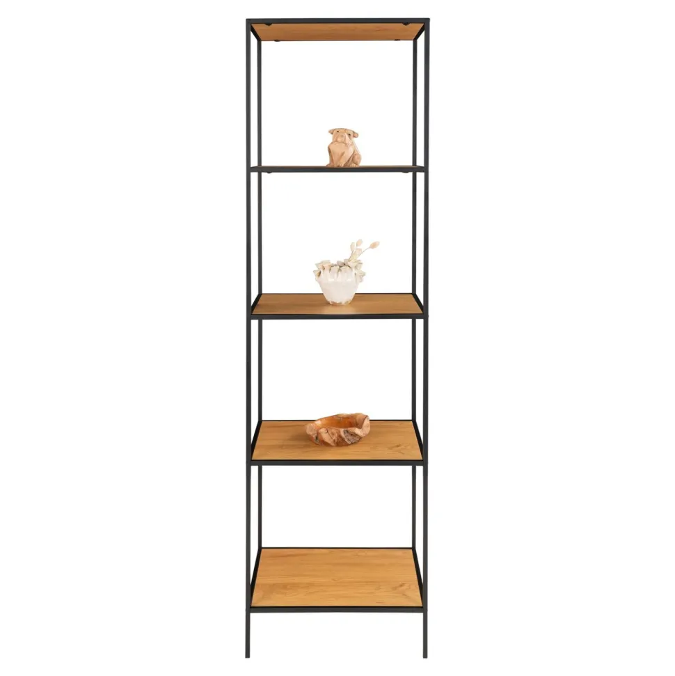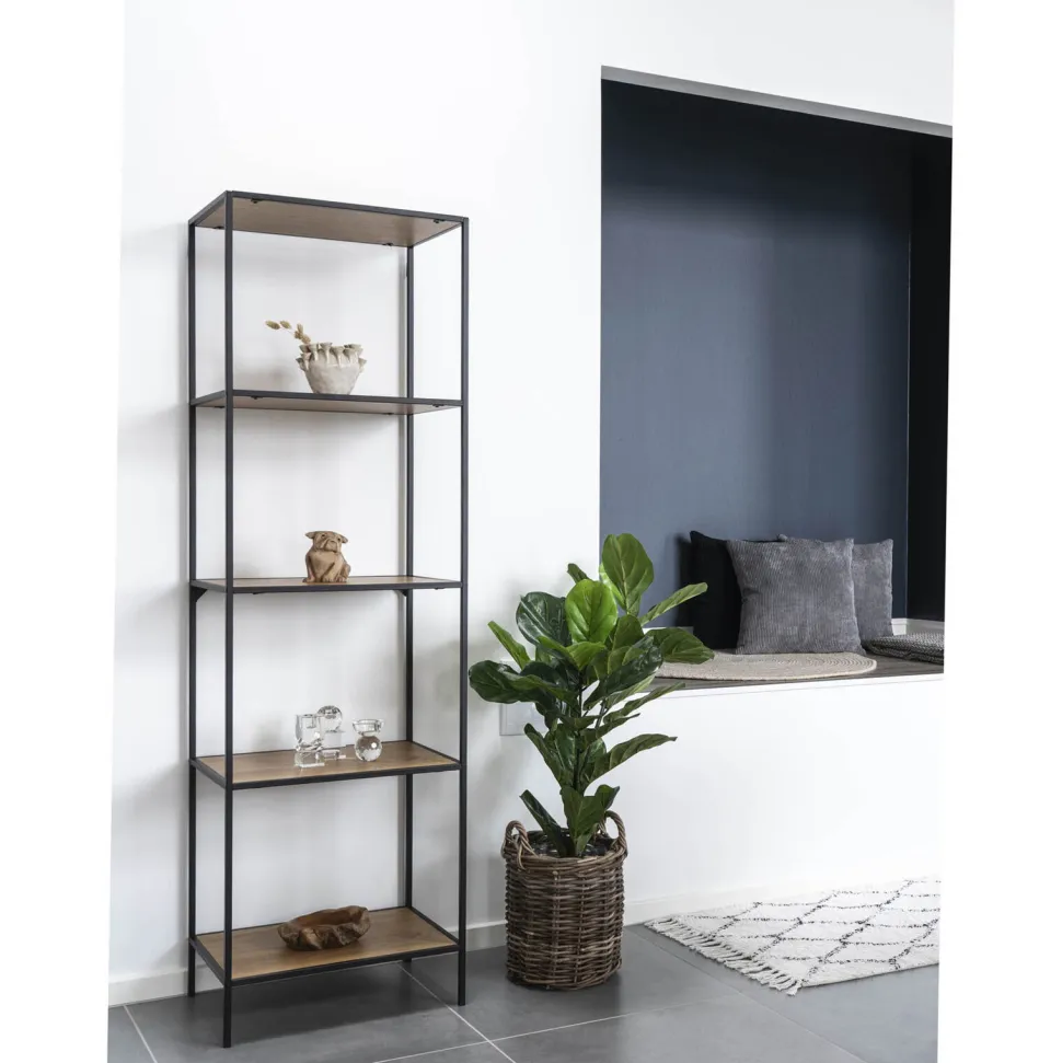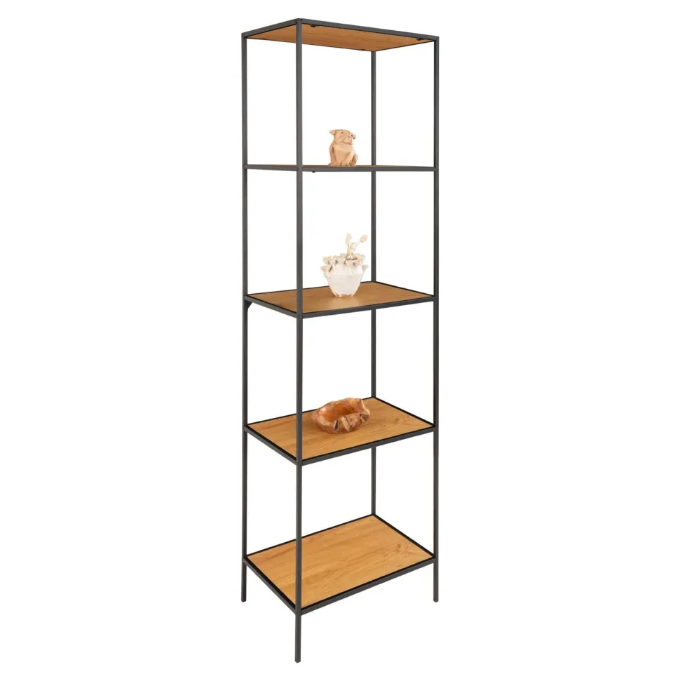 Pięć półek z mocnej płyty wiórowej w okleinie imitującej dąb, nadaje regałowi naturalny i przyjemny wygląd. Dzięki temu, regał Vita idealnie wpisuje się w aranżacje w stylu boho lub skandynawskim, dodając przytulności i ciepła do Twojego wnętrza. Nie tylko jest funkcjonalny, ale także estetyczny. Regał Vita doskonale komponuje się z różnymi rodzajami dekoracji, dodając im wyjątkowego charakteru. Niezależnie czy chcesz wyeksponować swoje książki, wazony czy ciekawe figurki, regał Vita zapewni im odpowiednie miejsce, gdzie będą mogły się pięknie prezentować.