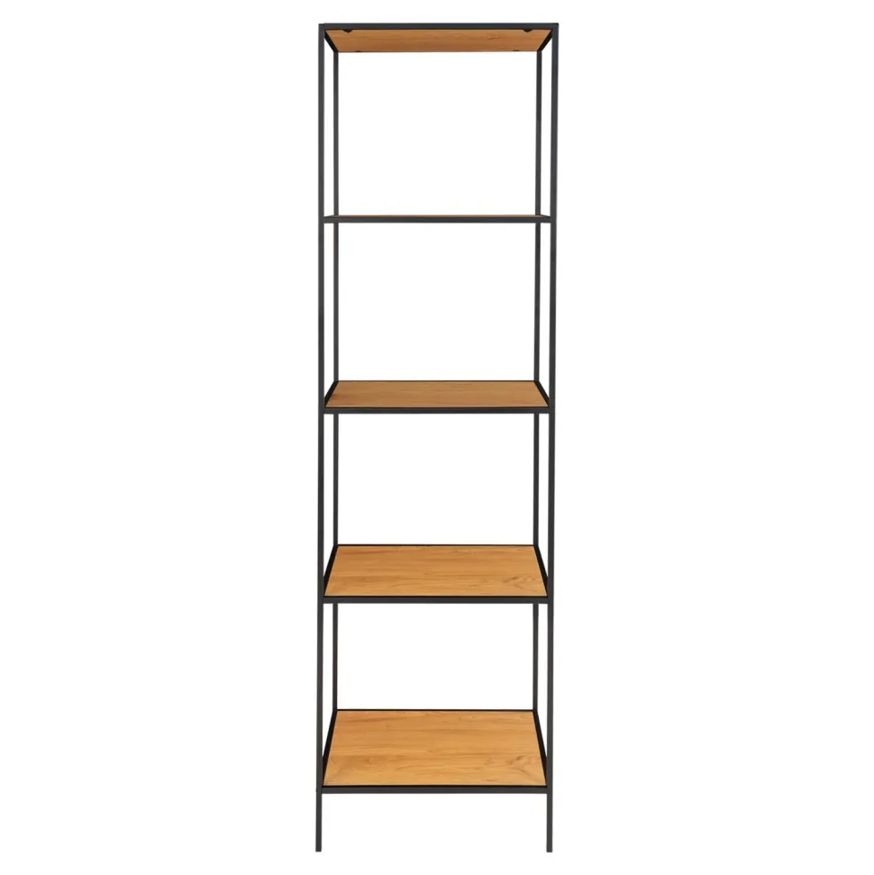 - Pięć półek z mocnej płyty wiórowej w okleinie imitującej dąb z udźwigiem do 5 kg