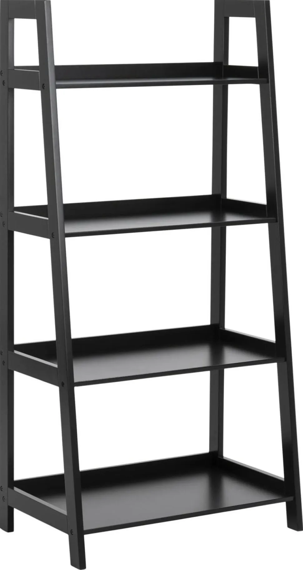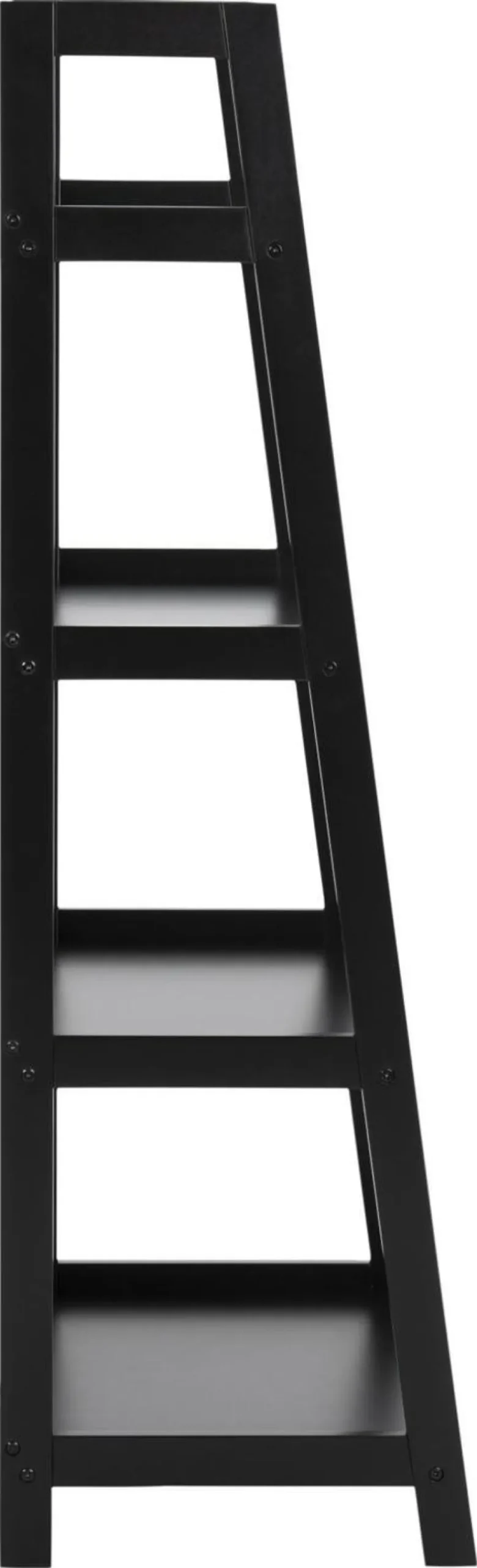 Regał Wally został zrobiony z drewna polakierowanego na czarno. Regał składa się z czterech półek, które są głębsze u dołu oraz coraz płytsze na górze. Efektowne połączenie bocznych nóg regału dodaje mu ponadczasowego wyglądu. Waga: 12 kg.