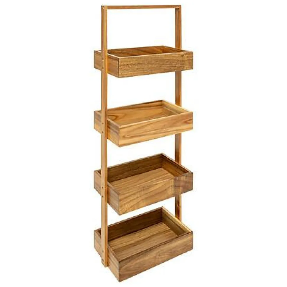 - Regał z 4 półkami wykonany z trwałego drewna akacji