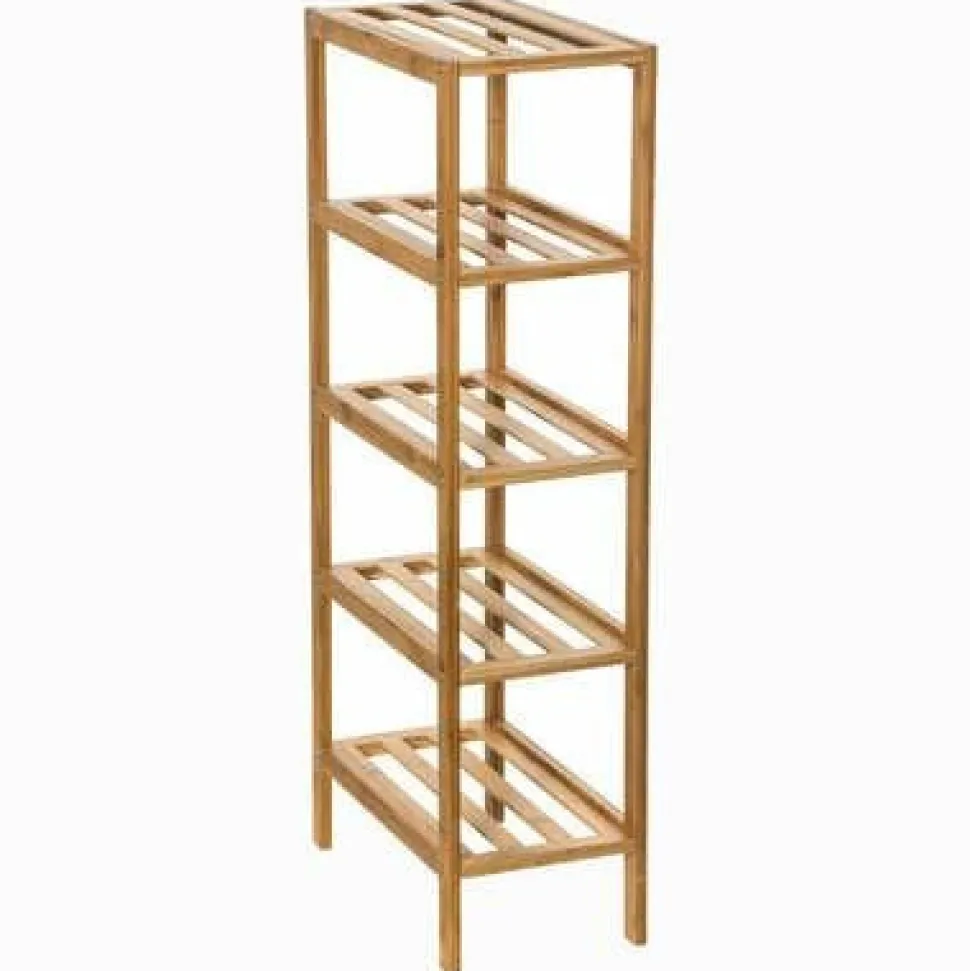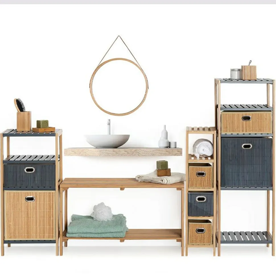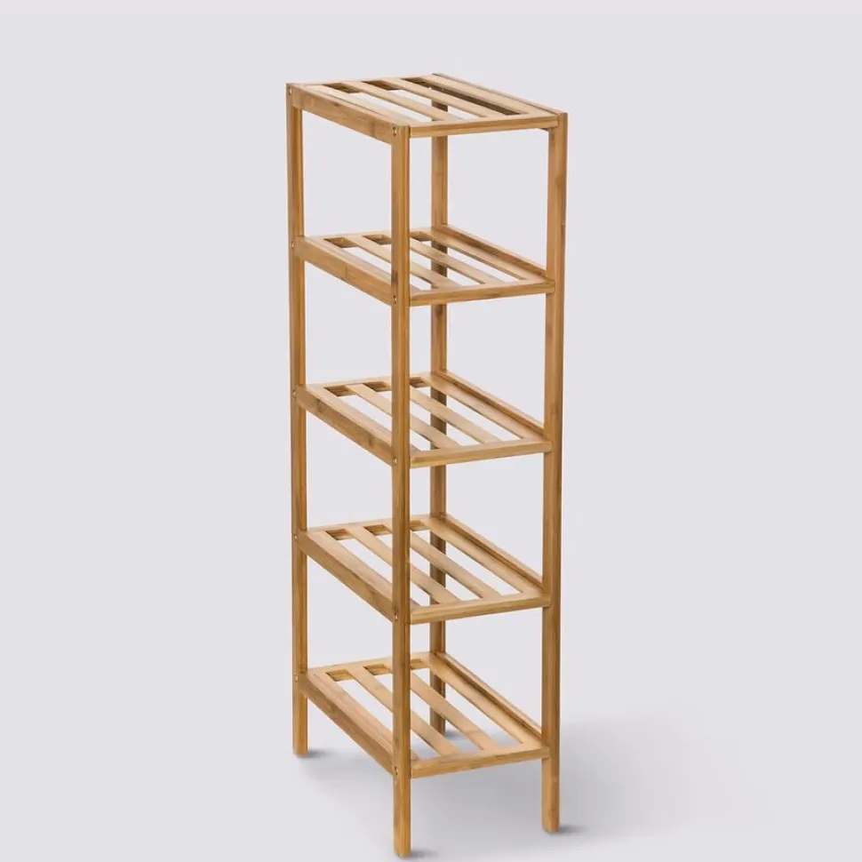Naturalne piękno: Regał bambusowy Regał z 5 półkami to nie tylko praktyczne rozwiązanie do przechowywania, ale także designerski element, który doskonale wpisuje się w różne przestrzenie. O jego wszechstronności świadczą wymiary (szerokość 32 cm, głębokość 18,5 cm, wysokość 77,5 cm), co sprawia, że łatwo znajdzie swoje miejsce zarówno w łazience, salonie czy sypialni. To nie tylko funkcjonalny mebel do przechowywania, ale także stylowy element dekoracyjny, który wnosi do przestrzeni naturalny urok. Konstrukcja regału wykonana jest z trwałego bambusa, co nadaje mu naturalnego uroku i jednocześnie gwarantuje solidność. Materiał ten sprawia, że regał świetnie komponuje się z nowoczesnymi i boho wnętrzami, dodając im ciepła i charakteru. Prostokątny format regału oraz pięć półek oferują mnóstwo miejsca do przechowywania, co czyni go idealnym rozwiązaniem dla fanów minimalistycznych i naturalnych aranżacji. Regał jest praktyczny i łatwy w montażu, co pozwala dostosować go do własnych potrzeb i preferencji. Jego zastosowanie jest uniwersalne – doskonale sprawdzi się jako miejsce na ręczniki i dodatki w łazience, ale równie dobrze znajdzie swoje miejsce w salonie czy sypialni. Przygotuj się na mądry wybór! Uniwersalny regał z 5 półkami, doskonały do różnych pomieszczeń. Wykonany z trwałego bambusa, nadającego wnętrzu naturalnego charakteru. Prostokątny format i pięć półek zapewniają dużo miejsca do przechowywania. Doskonały do łazienki, salonu lub sypialni, idealny dla fanów minimalistycznych i naturalnych rozwiązań. Praktyczny i łatwy w montażu, wpasowuje się zarówno w nowoczesne, jak i boho wnętrza.