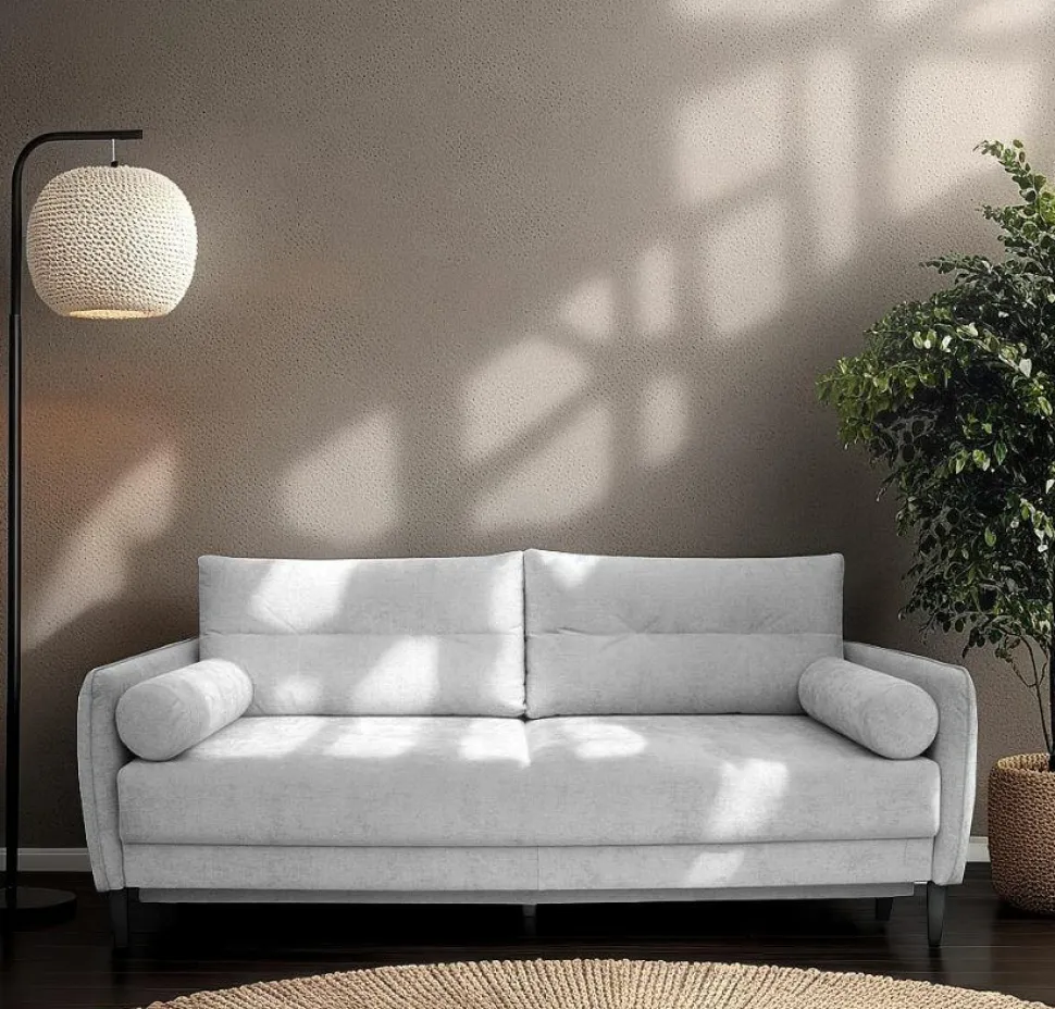 Sztruksowa sofa z funkcją spaniato doskonały wybór dla osób poszukujących mebla, który łączy elegancję z funkcjonalnością. Sofa pokryta jest miękką, sztruksową tkaniną, która nie tylko przyciąga wzrok, ale także jest bardzo przyjemna w dotyku. Tkanina sztruksowa wprowadza do wnętrza ciepło i przytulność, dzięki czemu sofa staje się prawdziwą ozdobą salonu. Jej uniwersalny design sprawia, że będzie pasować zarówno do nowoczesnych, jak i bardziej klasycznych aranżacji.