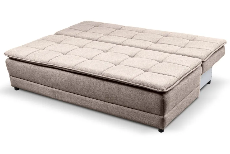 Beżowa sofa Mikkeli z funkcją spania zapewnia nie tylko komfort, ale również funkcjonalność. Wyposażona jest w sprężyny zig zag typu A oraz piankę poliuretanową T28/30, które zapewniają miękkość siedziska. Dodatkowo, oparcie sofy posiada sprężynę falistą typu „A” oraz piankę poliuretanową 16/20, co gwarantuje komfort nawet po rozłożeniu sofy. Powierzchnia spania to aż 155×200 cm, co pozwala na swobodny i wygodny sen.