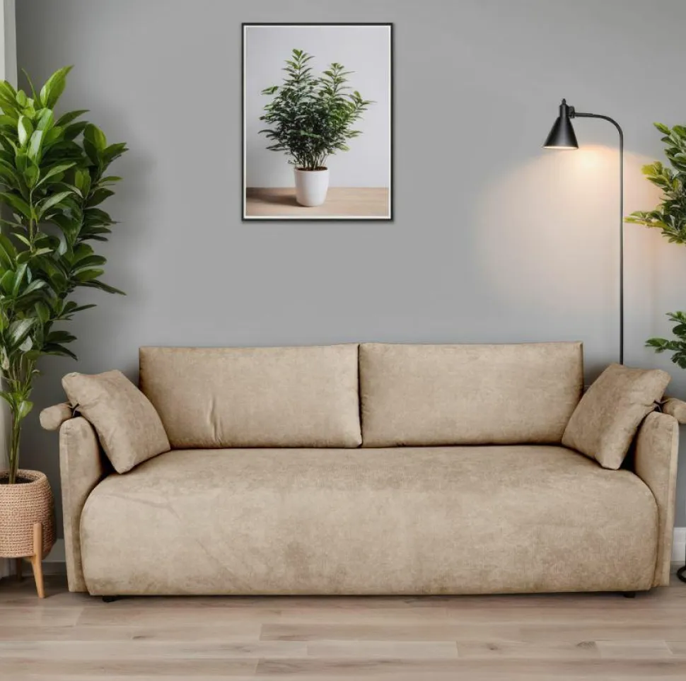Sztruksowa sofa z funkcją spania to doskonały wybór dla osób poszukujących mebla, który łączy elegancję z funkcjonalnością. Sofa pokryta jest miękką, sztruksową tkaniną, która nie tylko przyciąga wzrok, ale także jest bardzo przyjemna w dotyku. Tkanina sztruksowa wprowadza do wnętrza ciepło i przytulność, dzięki czemu sofa staje się prawdziwą ozdobą salonu. Jej uniwersalny design sprawia, że będzie pasować zarówno do nowoczesnych, jak i bardziej klasycznych aranżacji.
