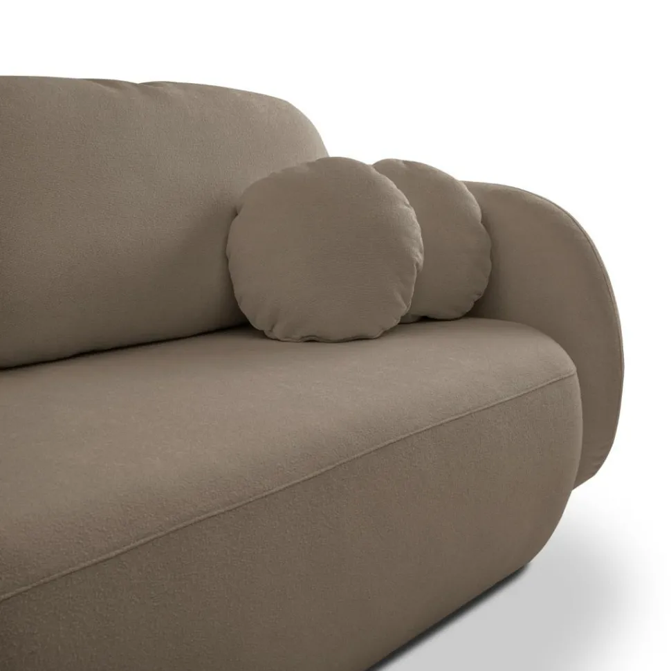 - Sofa posiada dwa okrągłe poduszki, które dodają komfortu i oparcia podczas poobiedniej drzemki.