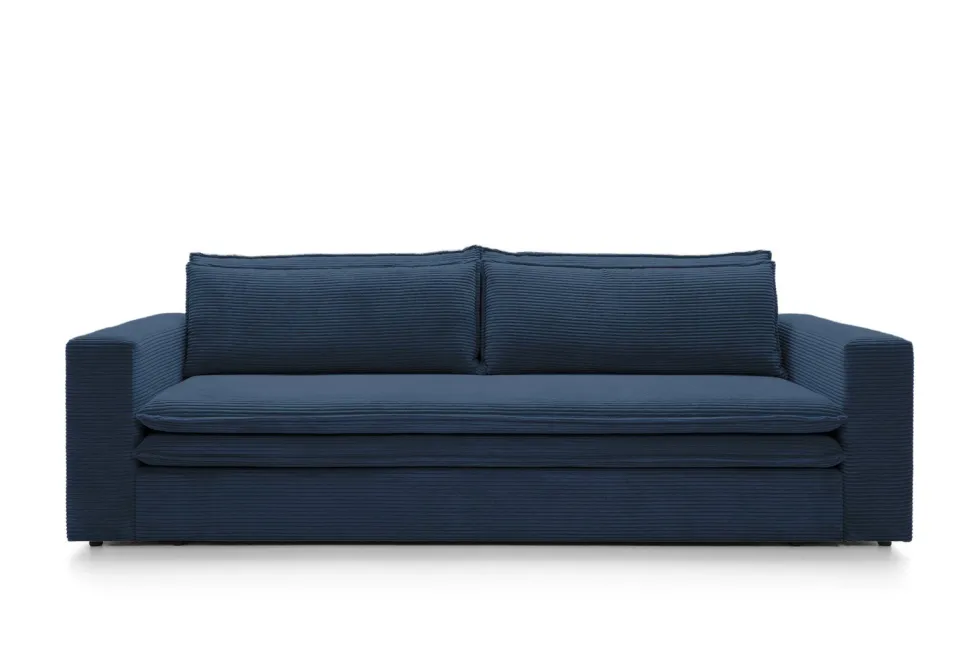 - Granatowy kolor sofy dodaje jej elegancji i sprawia, że pasuje do różnych stylów wnętrz.