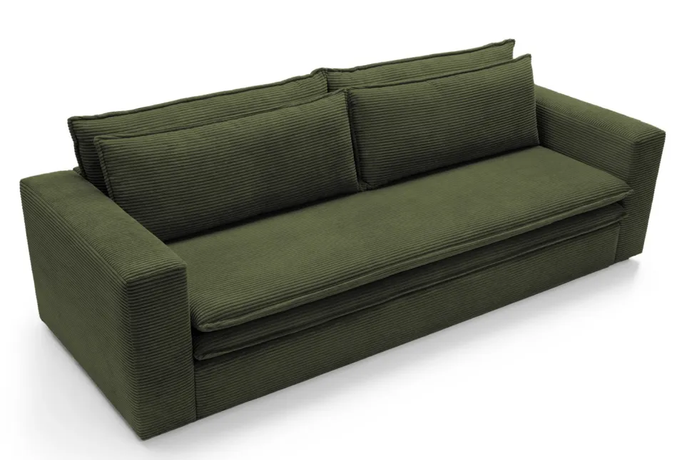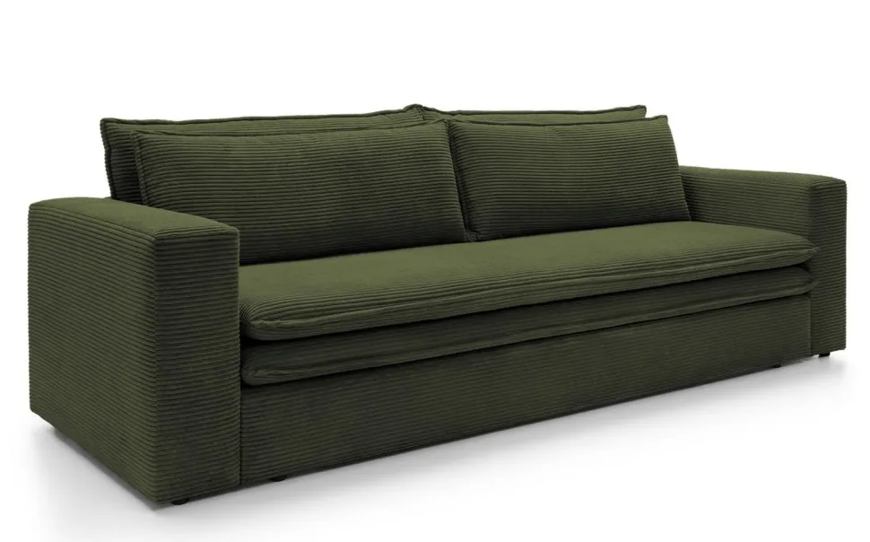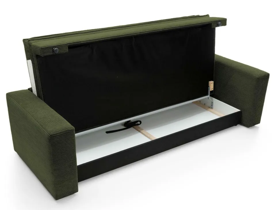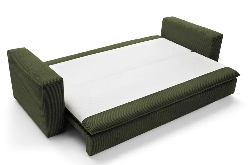 - Wykonana z miękkiej, sztruksowej tkaniny, sofa zapewnia komfortowy sen dzięki dużej powierzchni spania.