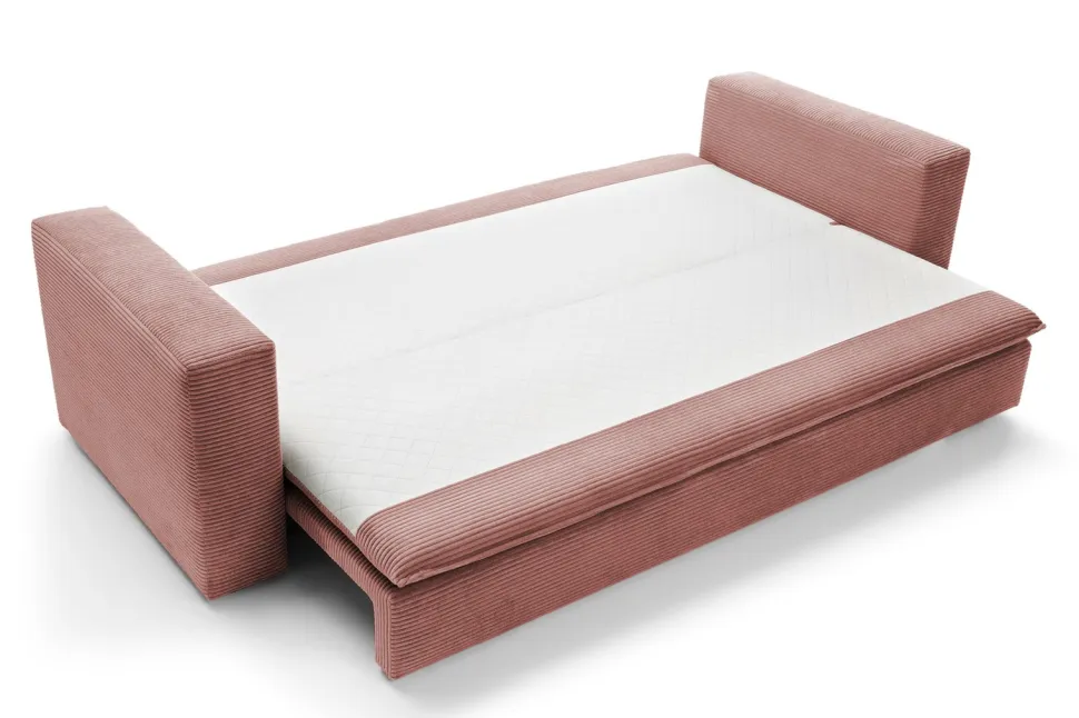 Sofa Ulnes z funkcją spania różowa Poso 29 to idealne rozwiązanie dla małych przestrzeni. Dzięki możliwości rozłożenia sofy na duże łóżko o powierzchni 200x140cm, zyskujesz dodatkowe miejsce do spania dla gości. A gdy goście wyjadą, z łatwością złożysz sofę, zyskując ponownie przestrzeń w swoim salonie.