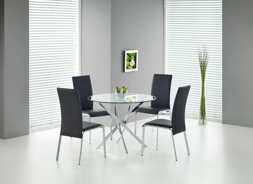 Jeśli szukasz wyjątkowego, luksusowego stołu, który ożywi Twoją przestrzeń, to Amber jest właśnie dla Ciebie. 4-osobowy stół o nowoczesnym designie jest idealny zarówno na duże przyjęcia, jak i rodzinne kolacje. Transparentny blat elegancko odbija się na chromowych metalowych nogach, tworząc przyciągający wzrok element, który z pewnością przyciągnie komplementy od każdego gościa. Okrągły stół o średnicy 100 cm oraz wysokości 73 cm oferuje mnóstwo miejsca na talerze i napoje. Dla zwiększenia luksusu i trwałości, blat został wykonany z wytrzymałego szkła, a nogi z solidnego metalu. Dzięki stolikowi Amber możesz wnieść powiew wyrafinowania do każdej przestrzeni!